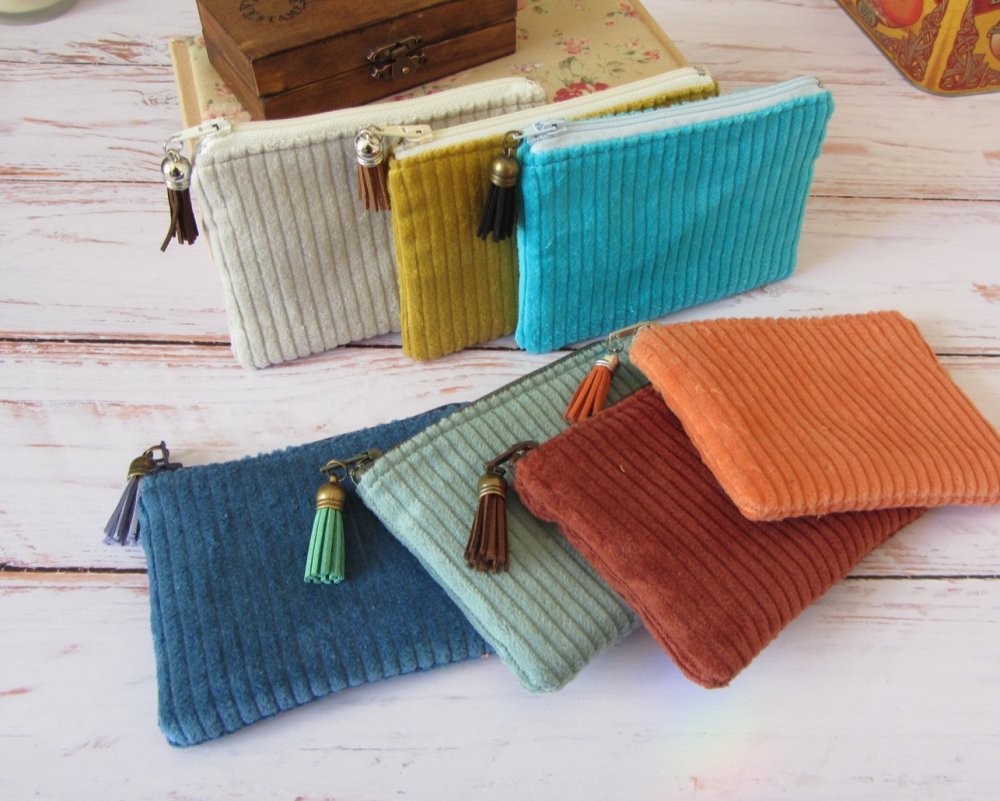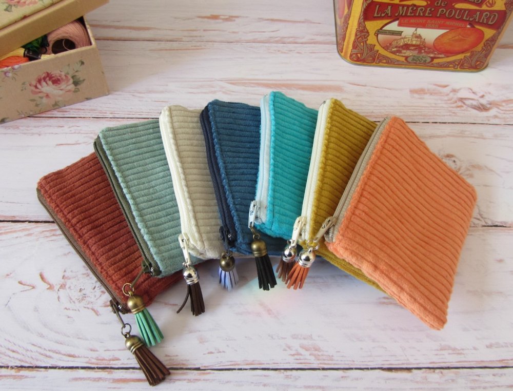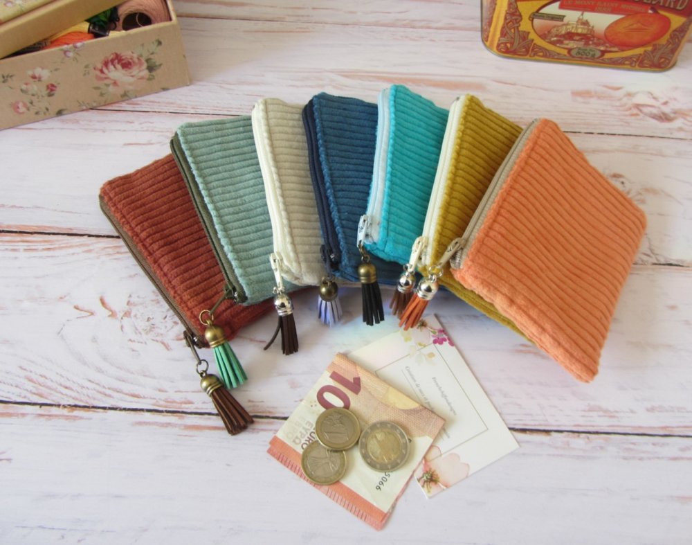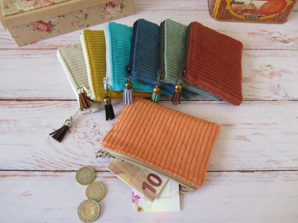 Petit porte-monnaie en tissu velours côtelé, parfait for un usage quotidien.