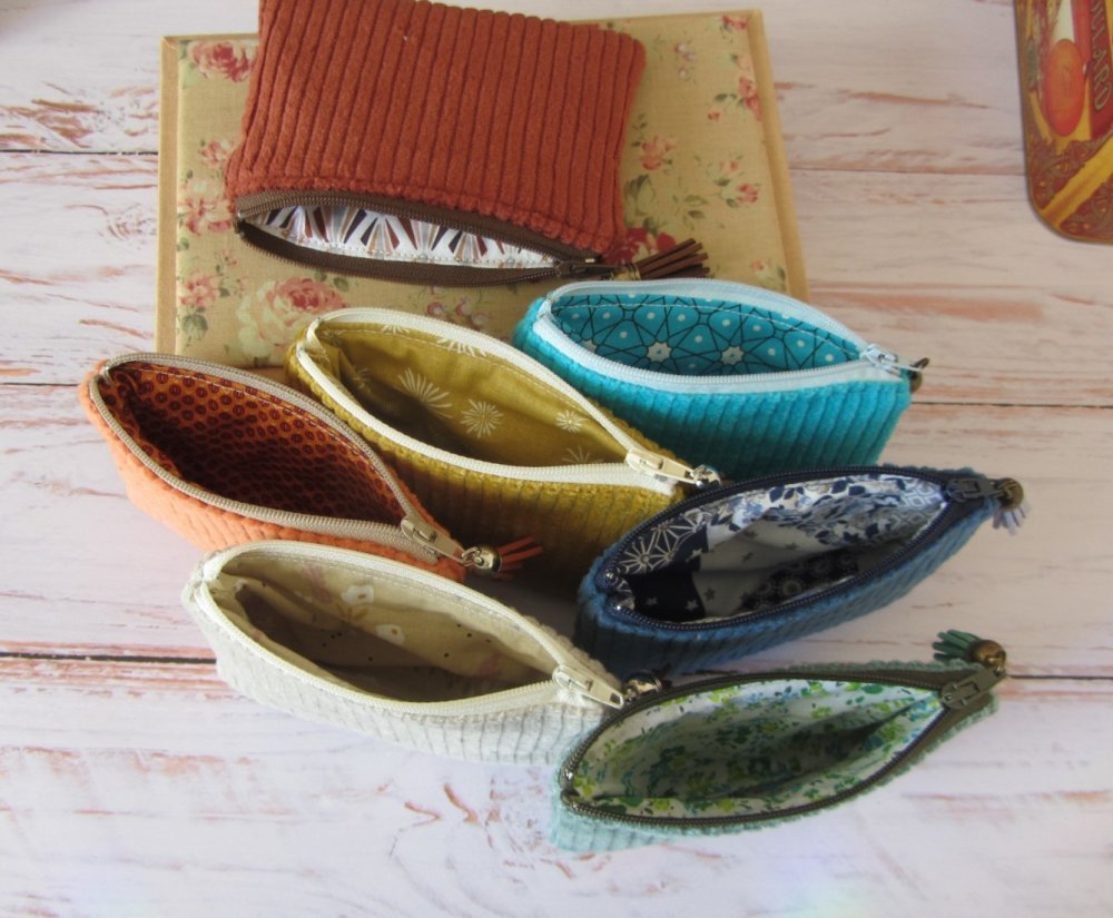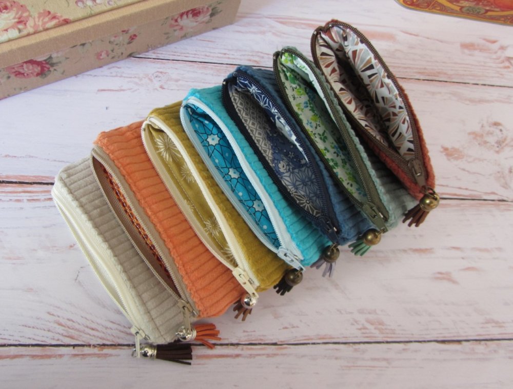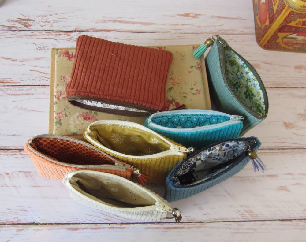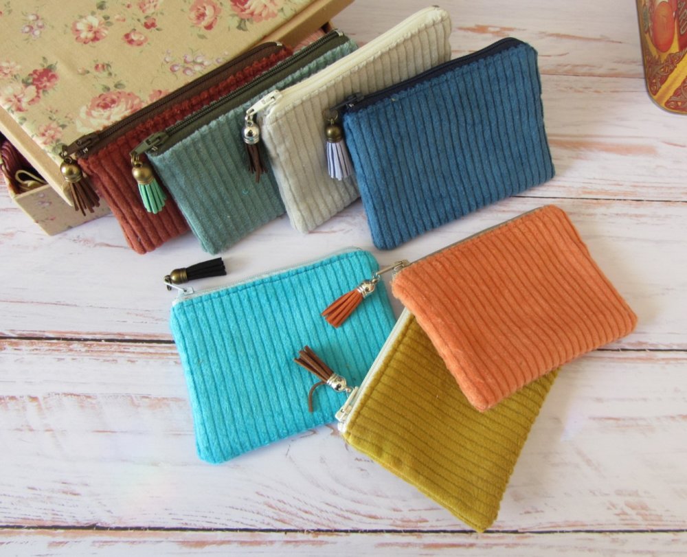 Petit porte-monnaie en tissu velours côtelé, parfait for un usage quotidien.