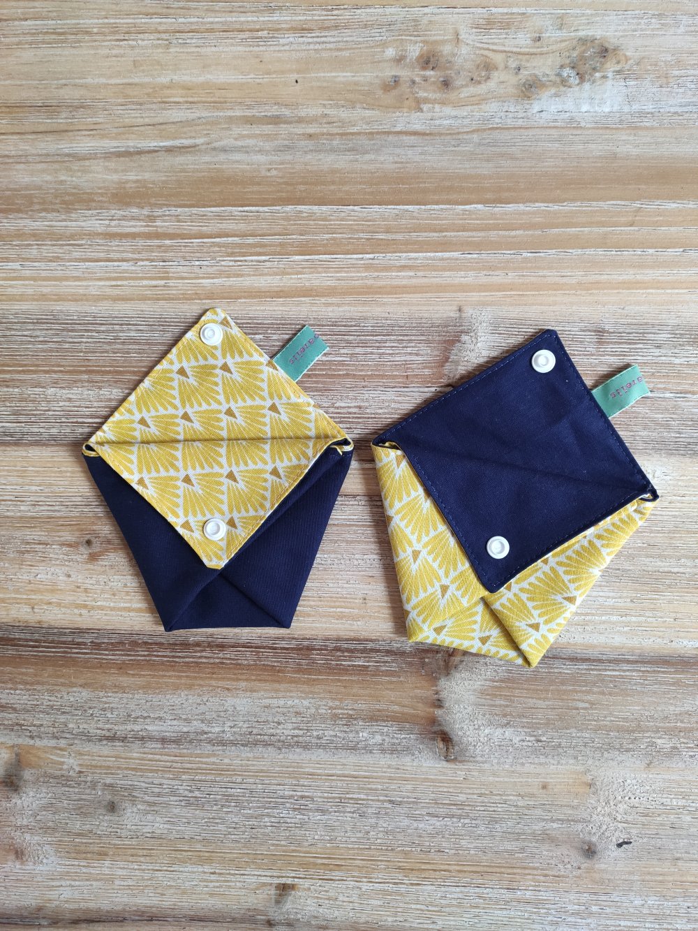 Pochette coton "Bleu marine-éventails jaune" avec bouton pression