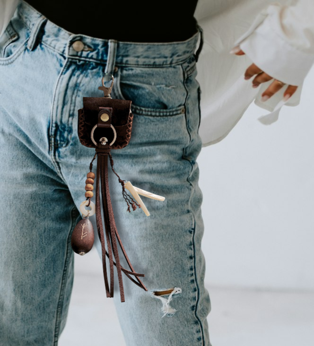 Pratique, vous pouvez l'accrocher en porte clé, sur un sac à main, au passant d'un pantalon ou en bandoulière (Lanière possible sur demande )