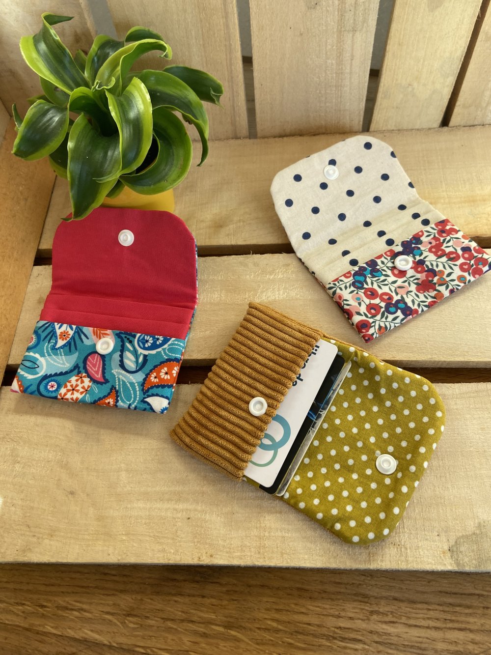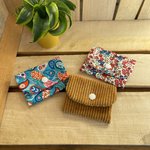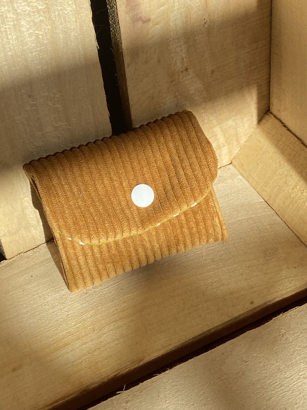 Porte cartes en velours cotelé ocre.