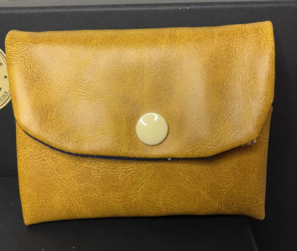 Porte-cartes similicuir caramel 10x8 cm-"optimiste" -bouton pression