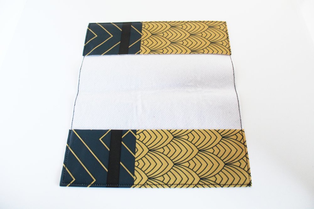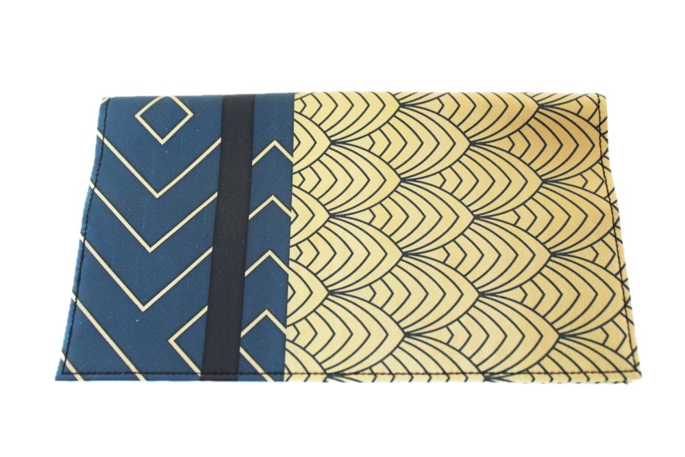 Personnalisez votre carnet de chèque avec cette housse pour votre chéquier en toile cirée émeraude, noire et dorée