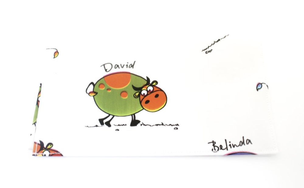 Personnalisez votre carnet de chèque avec cette housse pour votre chéquier en toile cirée blanche imprimée de petites vaches