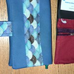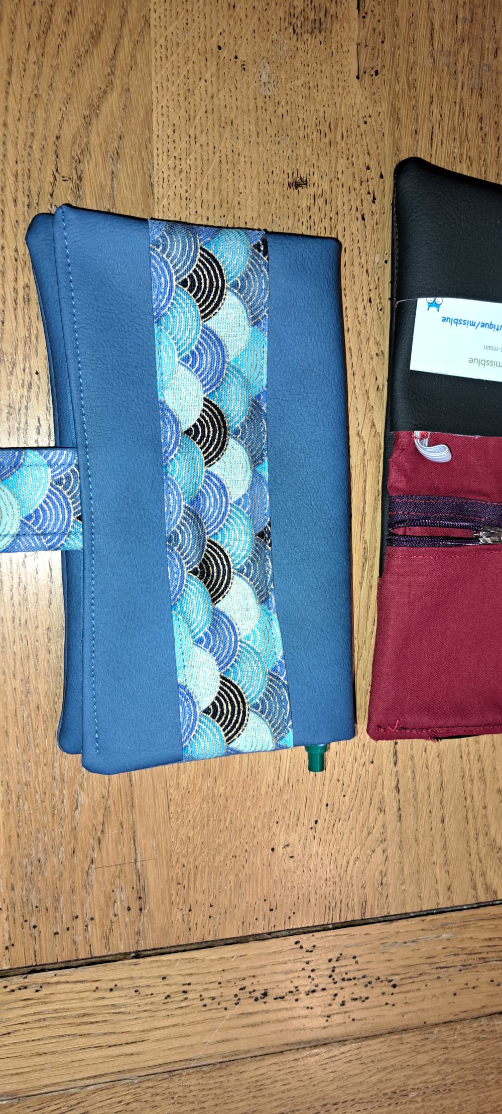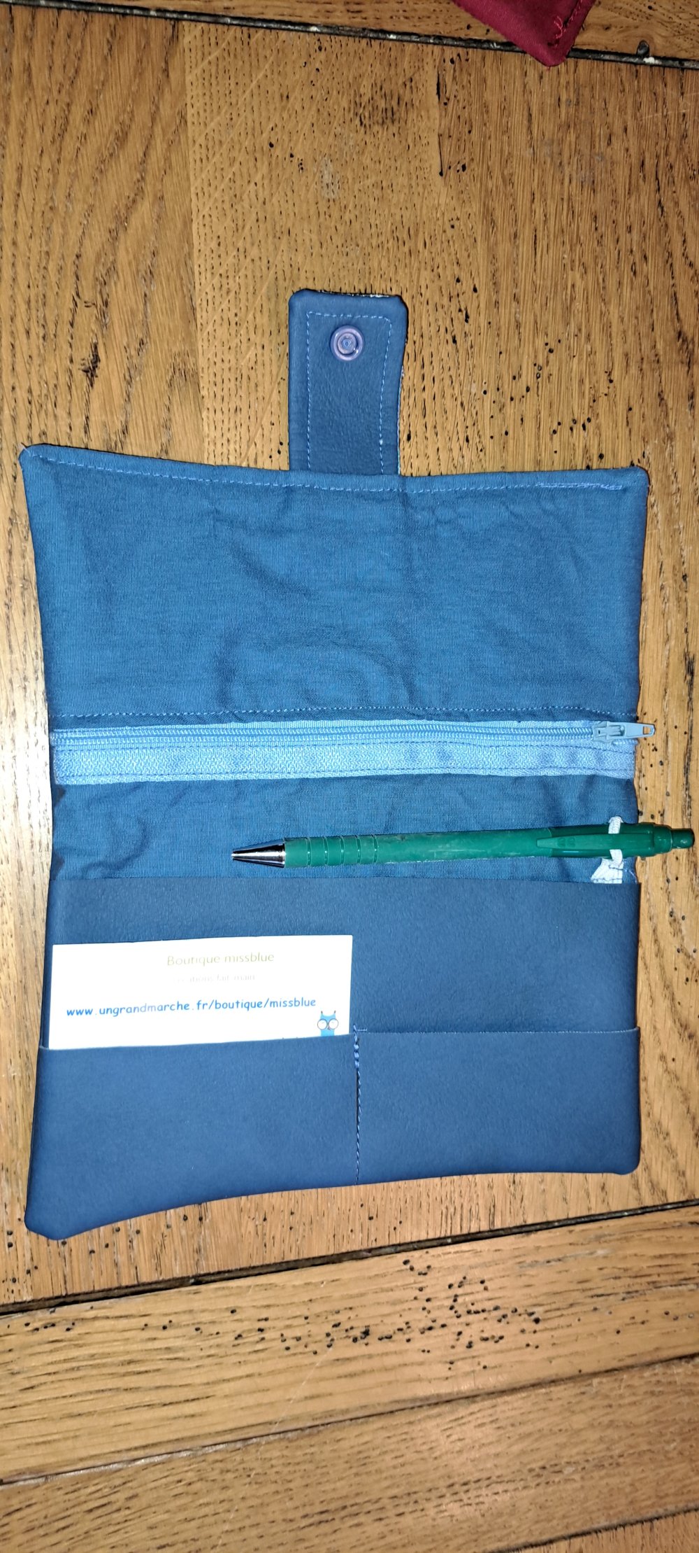porte chéquier multifonctions en simili cuir et tissubleu japonais et fermeture par patte avec pression