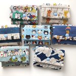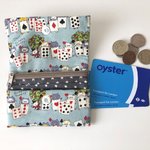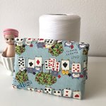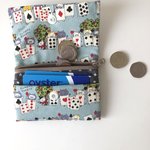 ~~Porte-feuille fait-main avec un tissu coton oxford importé du japon, en couleur bleu lin nature sur le fond en motif de chatons dans le pays de merveille.