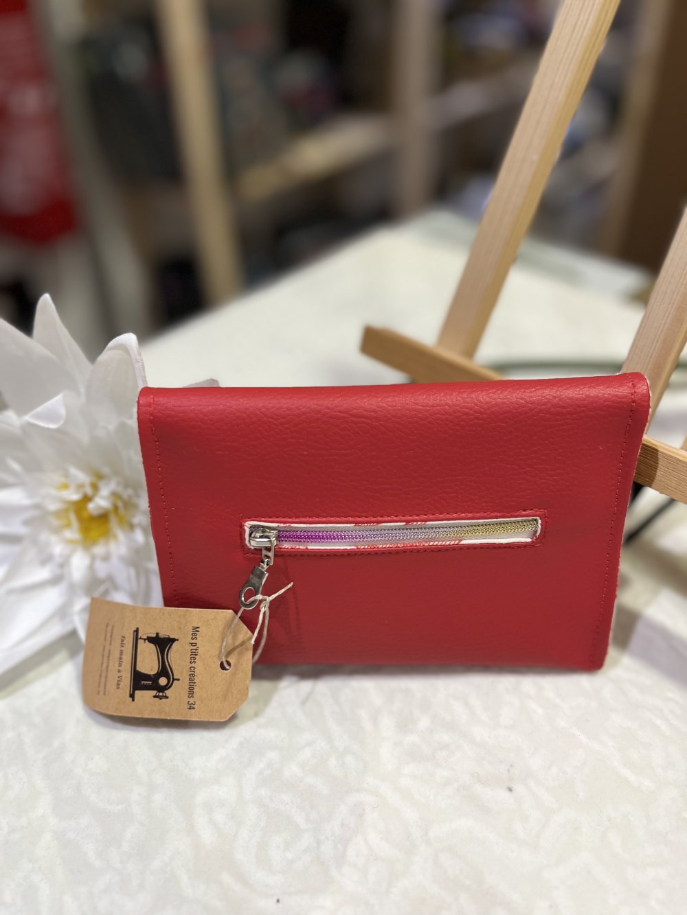 Pensé et réalisé pour contenir les billets, les cartes (un compartiment spécifique et très facilement accessible pour les cartes de crédit). A l'arrière du porte-monnaie, rapidement accessible, une fermeture éclair ouvre l'accès à une pochette pour la monnaie.