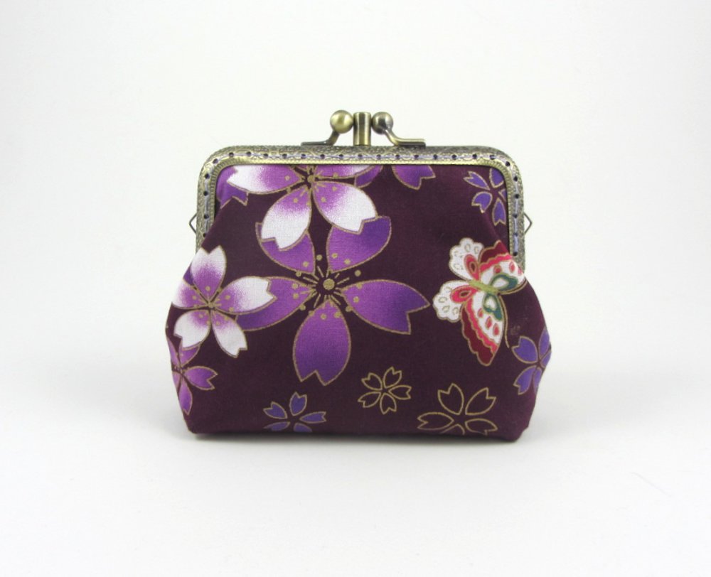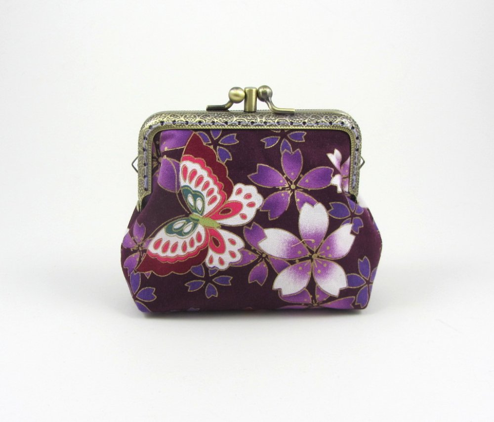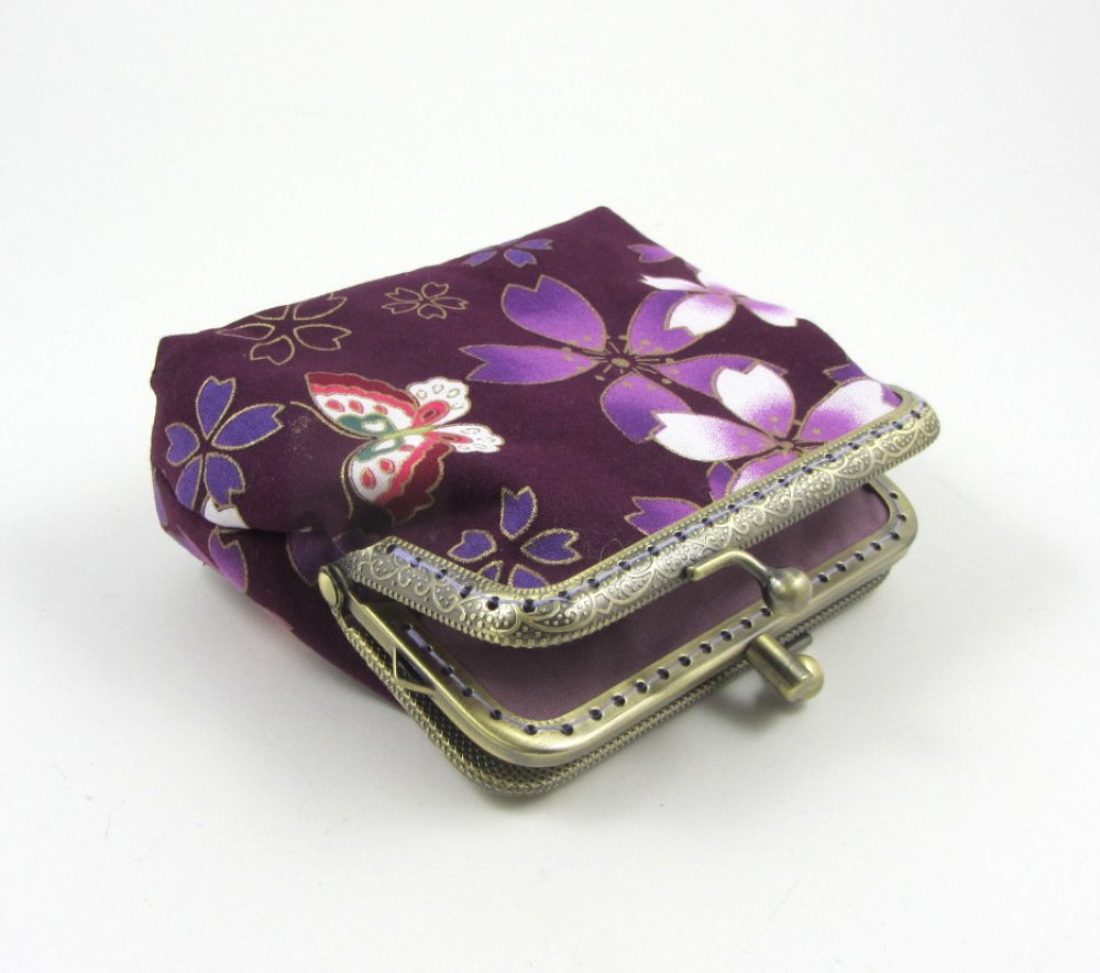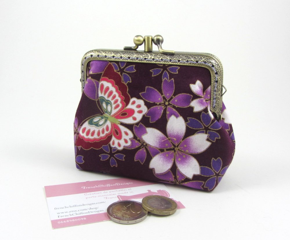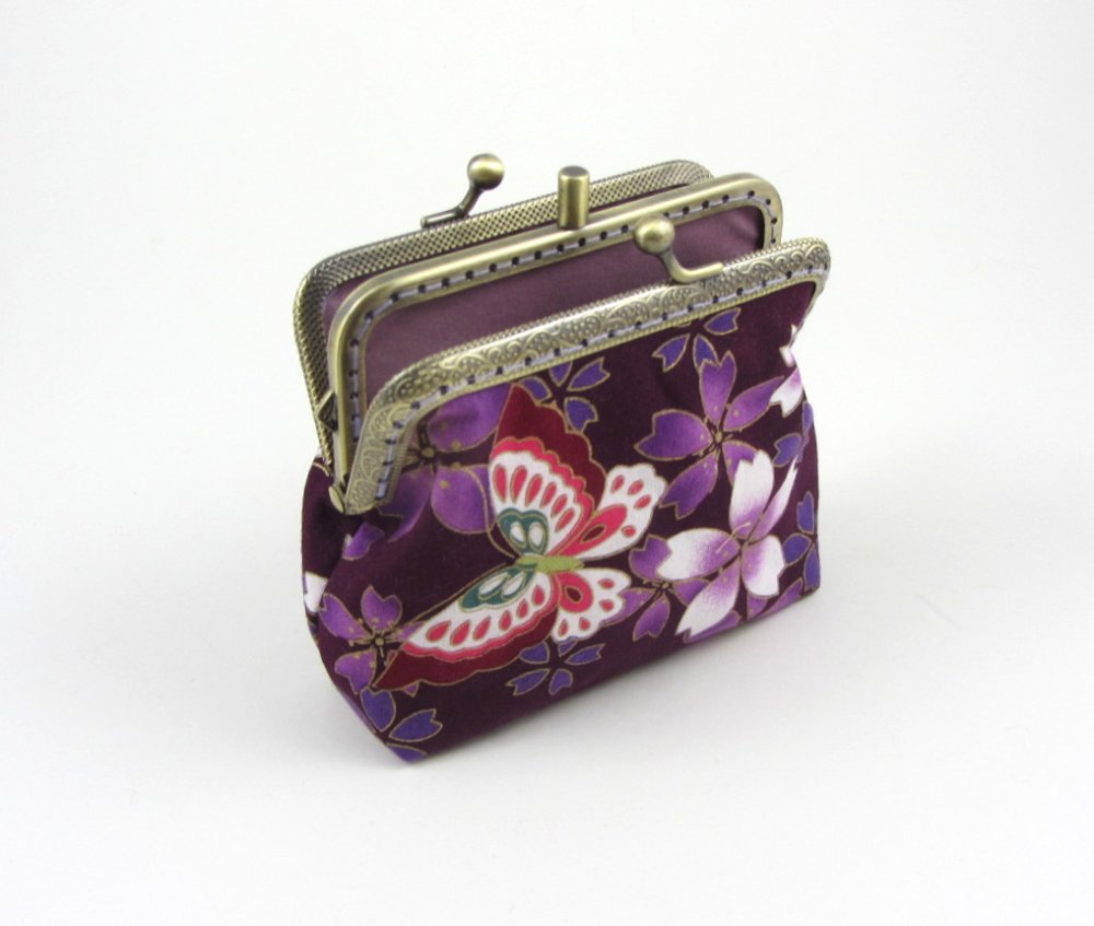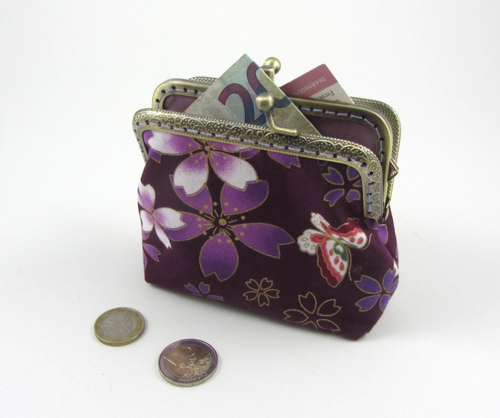 Porte-monnaie à fermoir double compartiments en coton japonais.