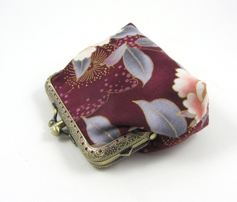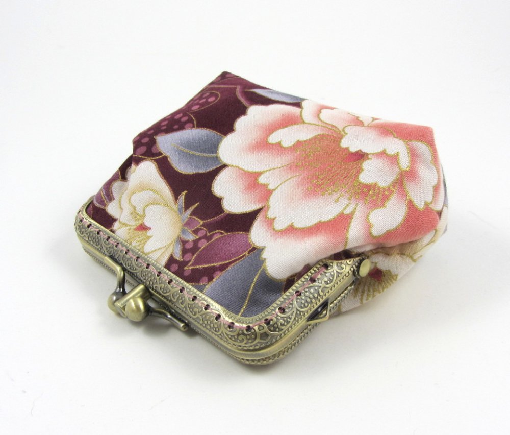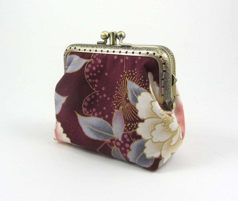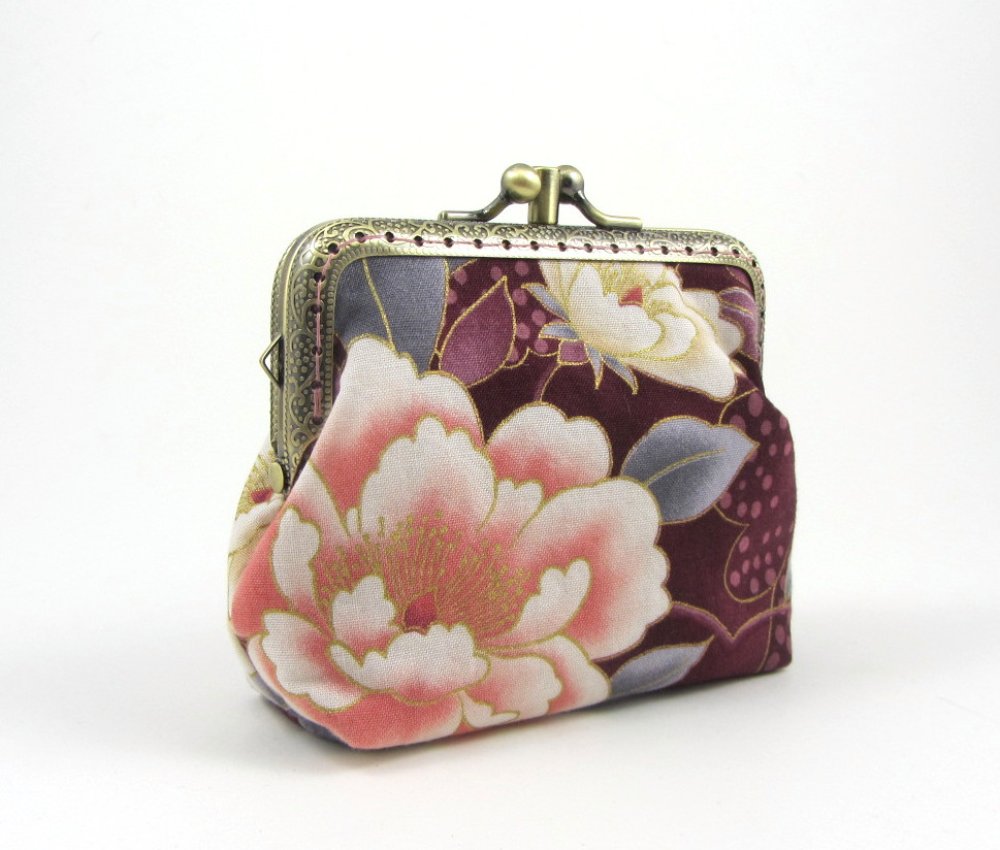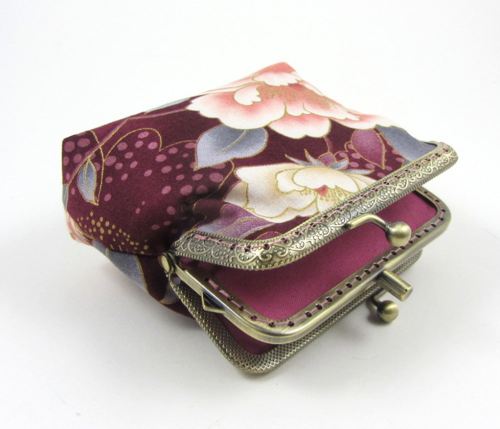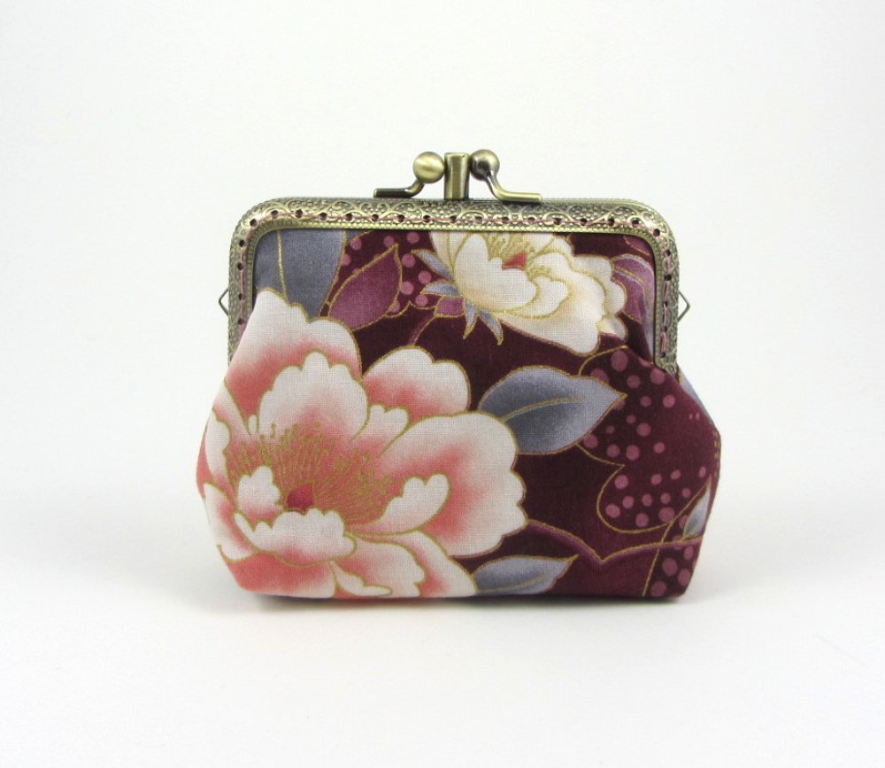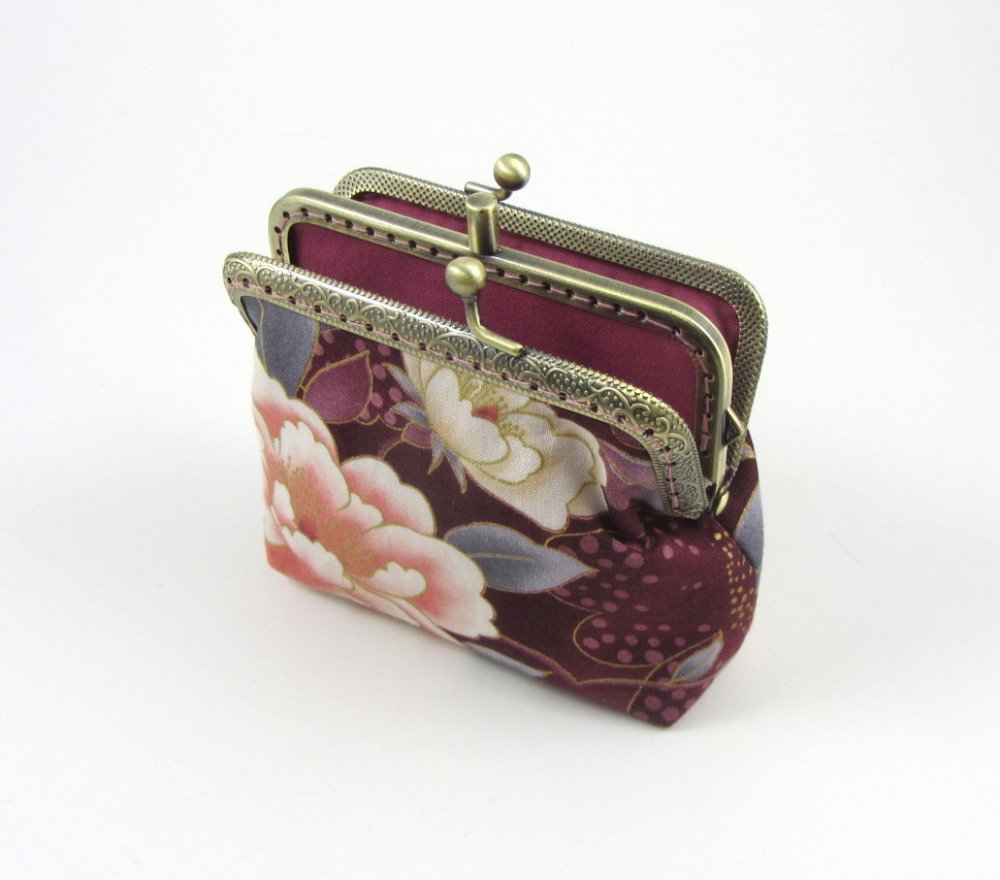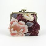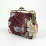 Porte-monnaie à fermoir double compartiments en coton grosse fleurs.