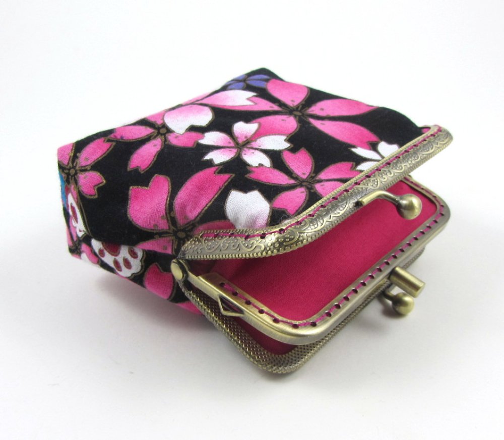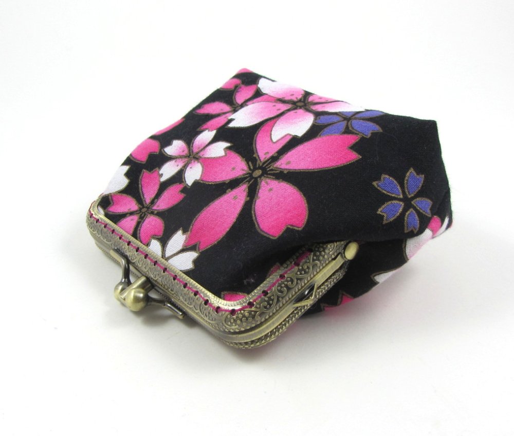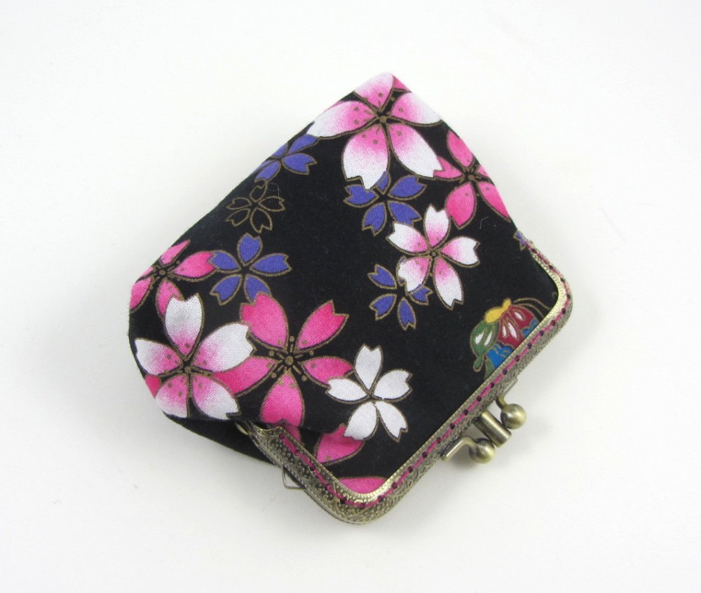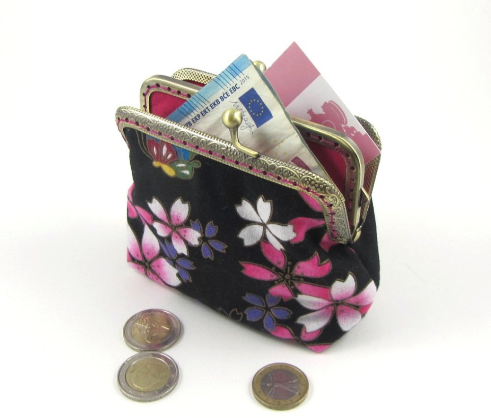 Porte-monnaie à fermoir double compartiments en coton japonais.