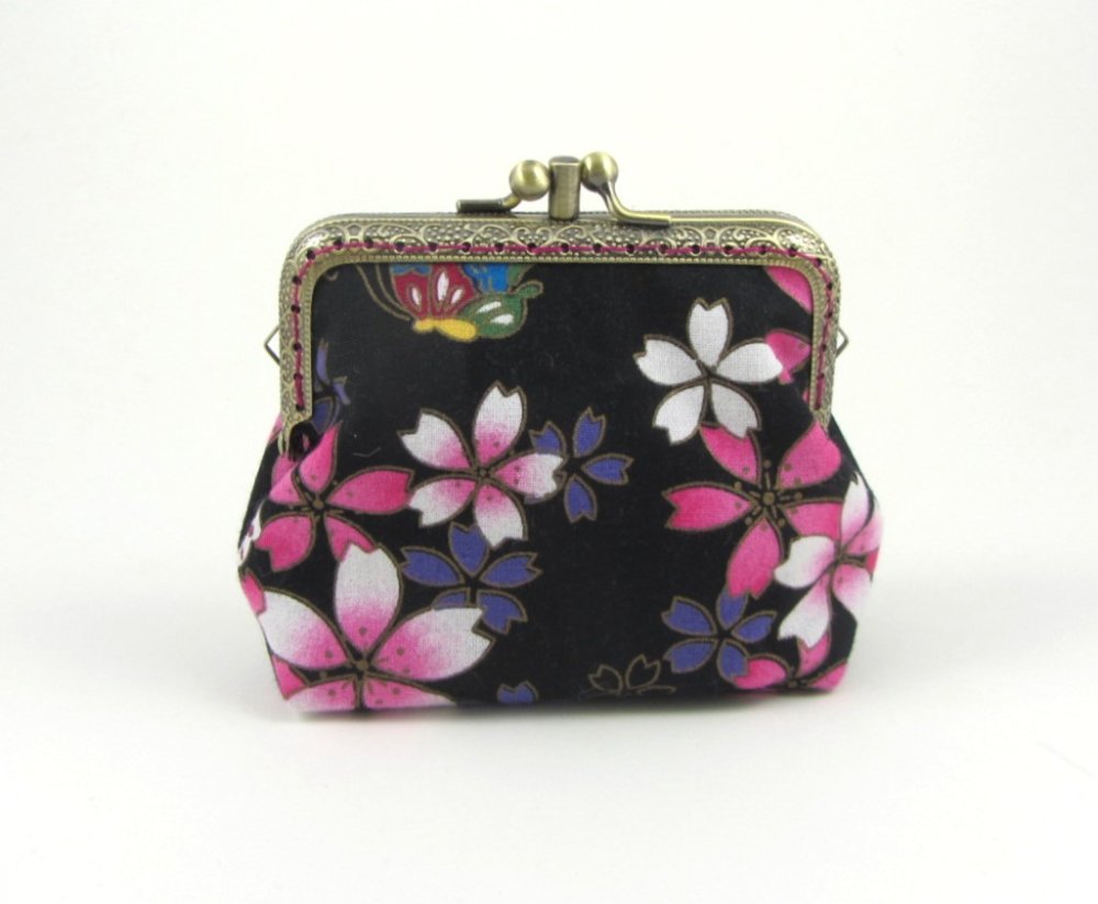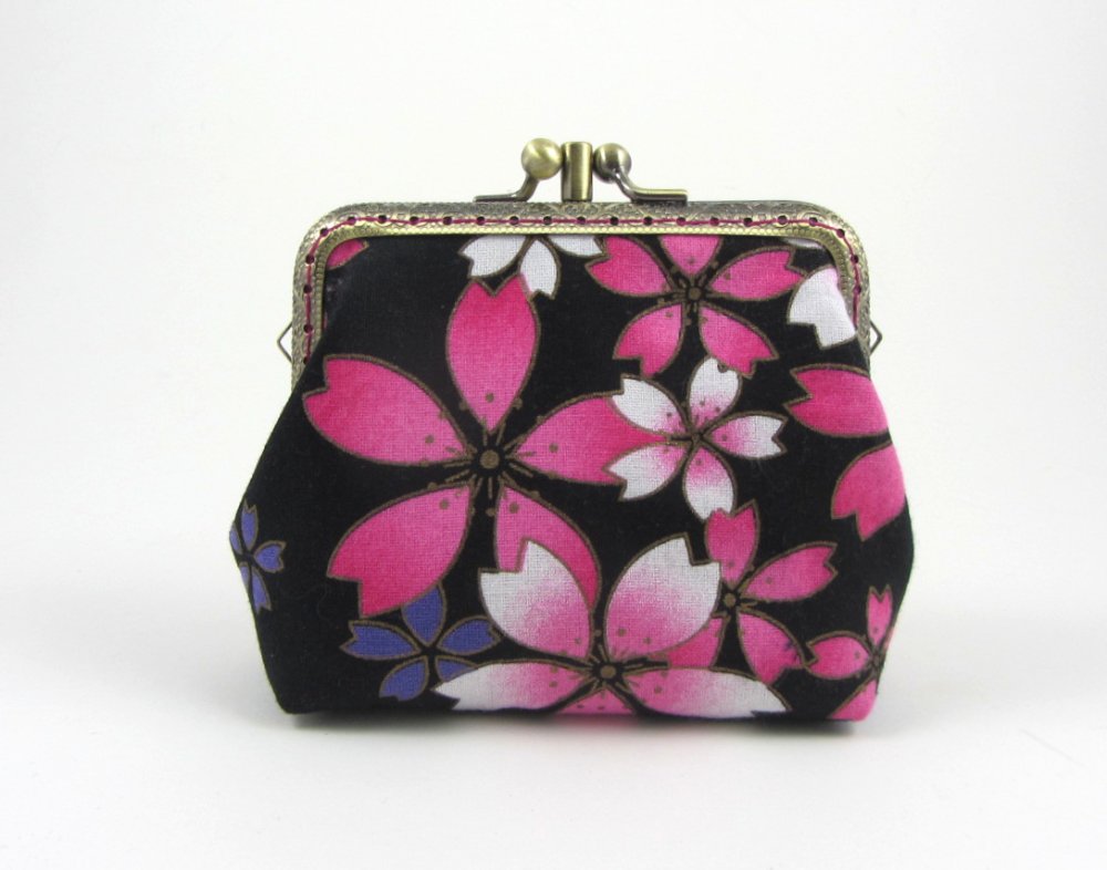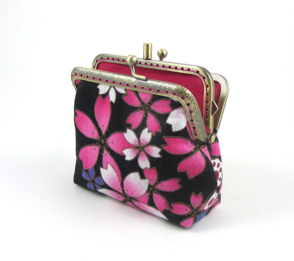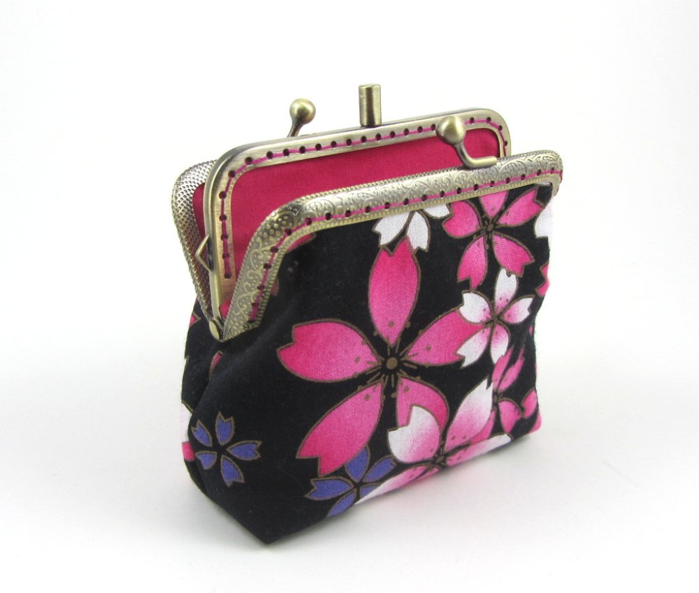 Porte-monnaie à fermoir double compartiments en coton japonais.