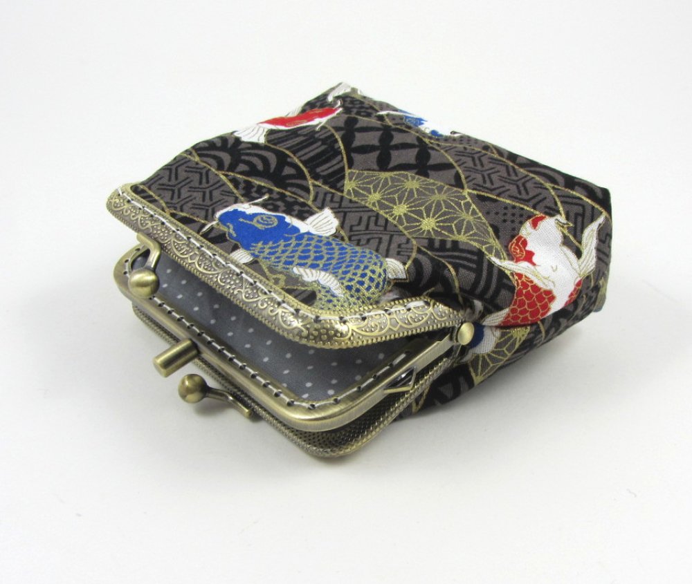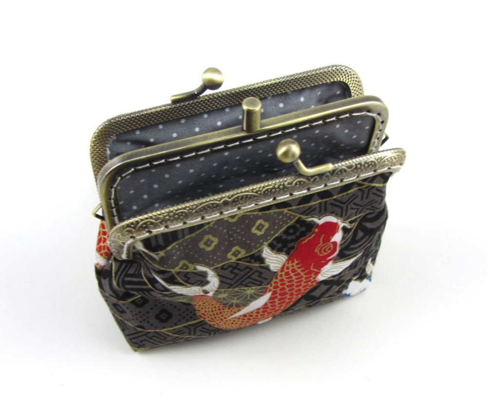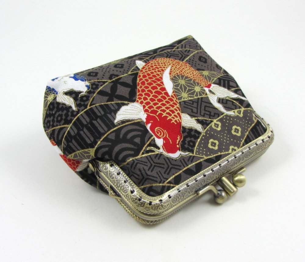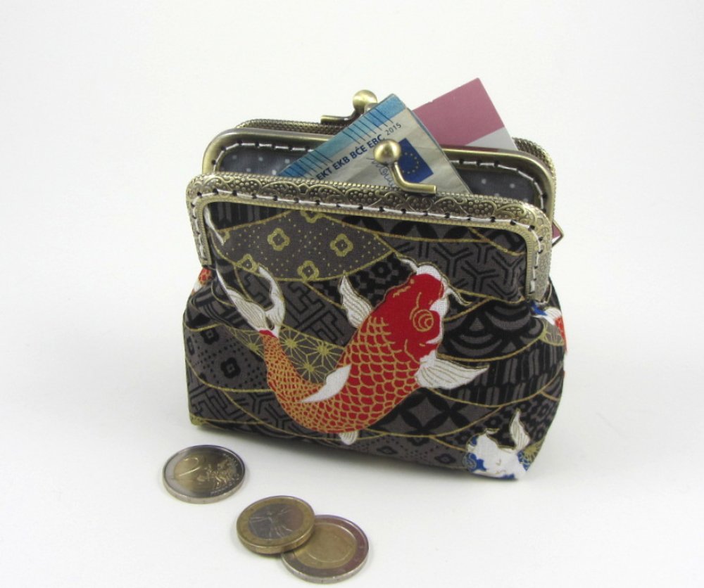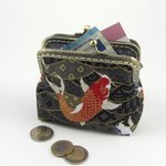 Porte-monnaie à fermoir double compartiments en coton japonais poisson carpe.