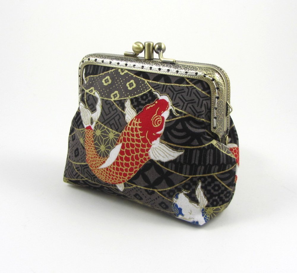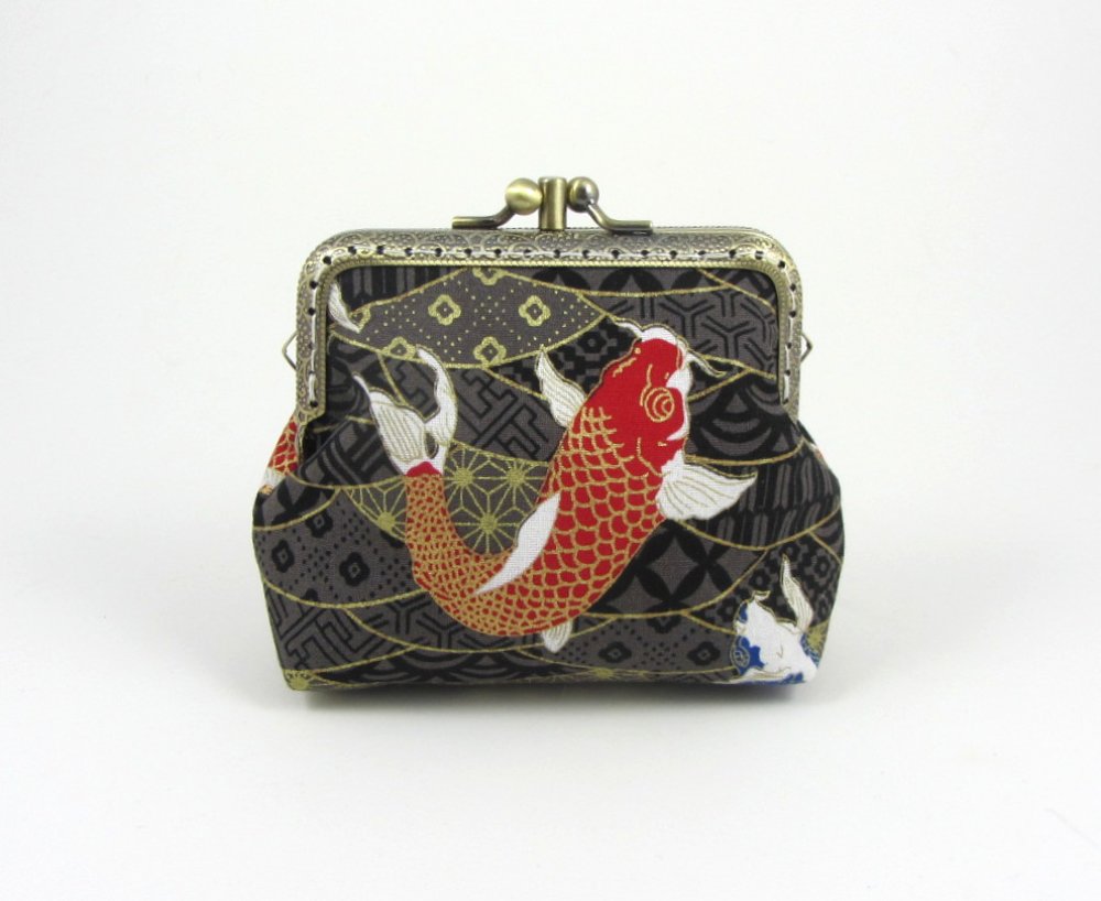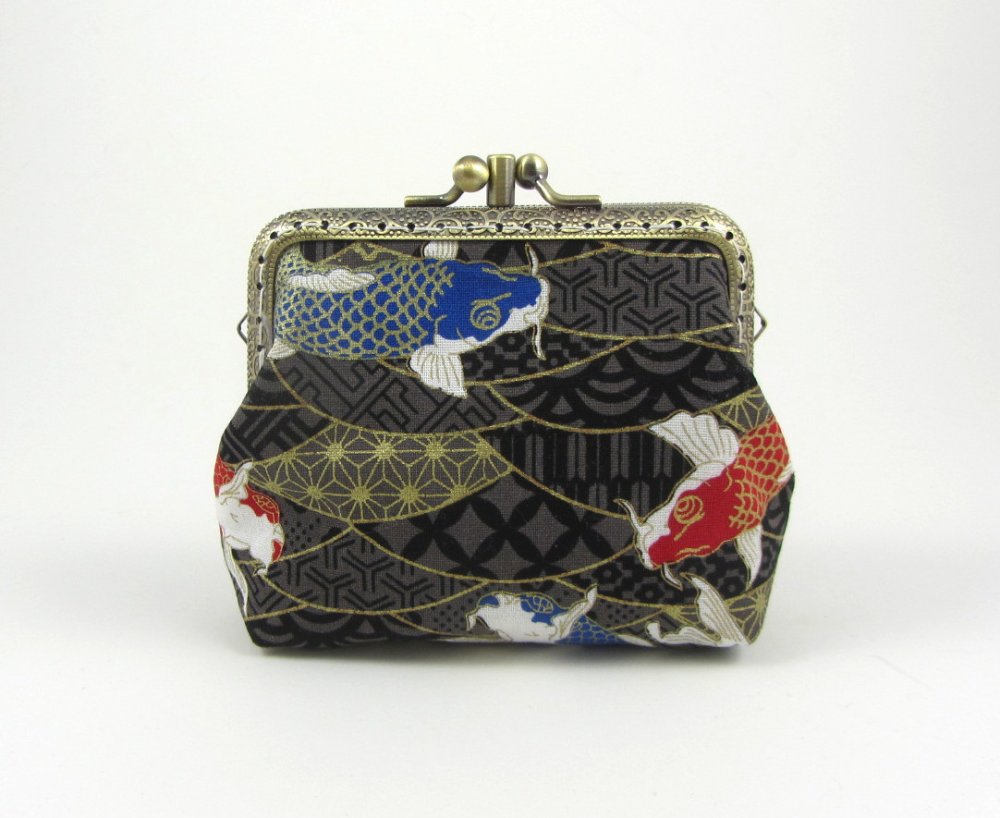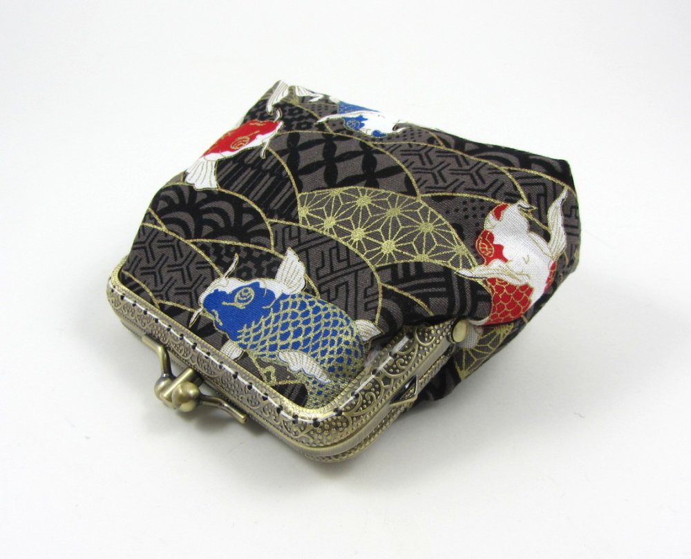 Porte-monnaie à fermoir double compartiments en coton japonais poisson carpe.