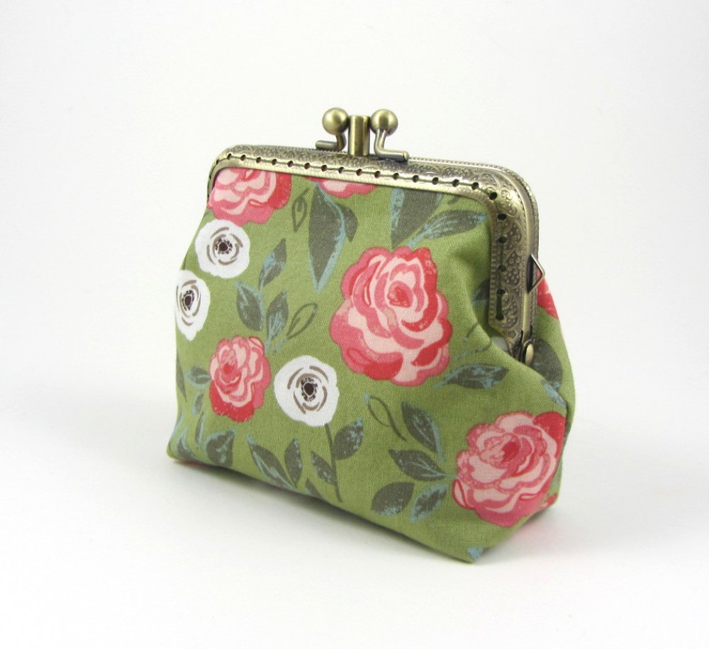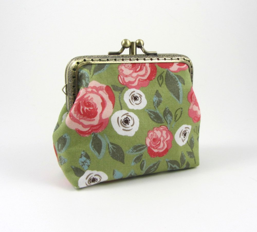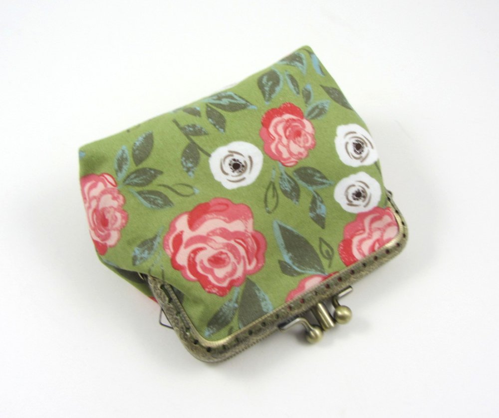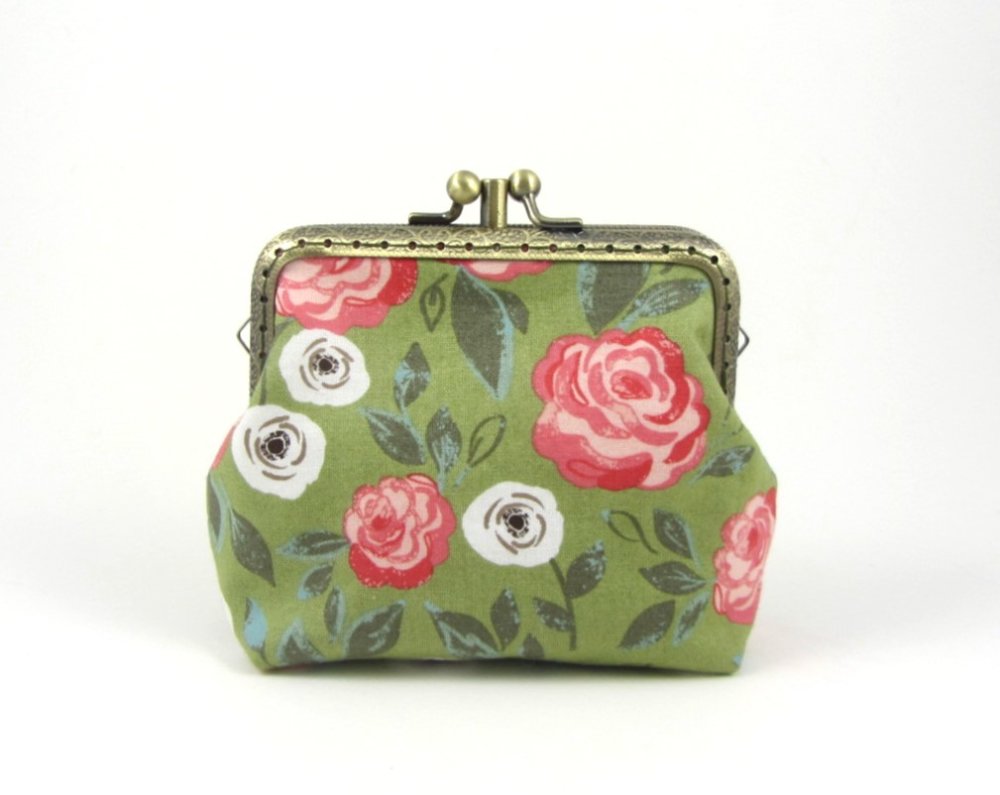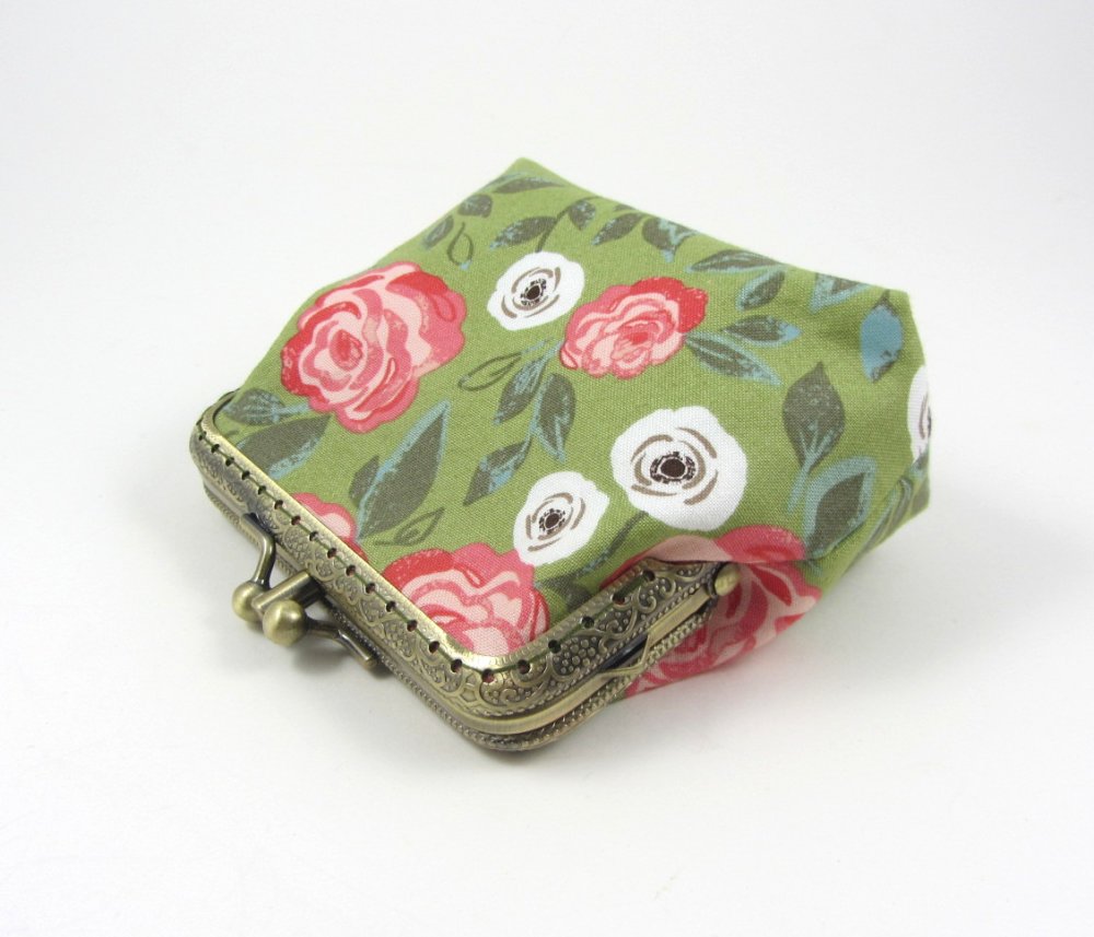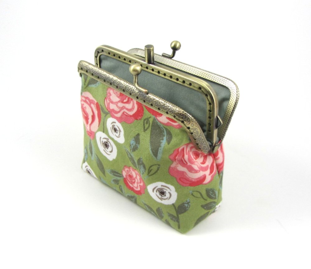 Porte-monnaie à double compartiments en coton rétro fleurs.