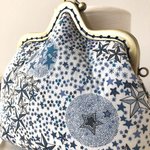 ~~ Porte-monnaie est réalisé dans un tissu coton Tana Lawn de Liberty of London, en motif d'étoiles et galaxy, et des petits points en bleus sur un fond crème.