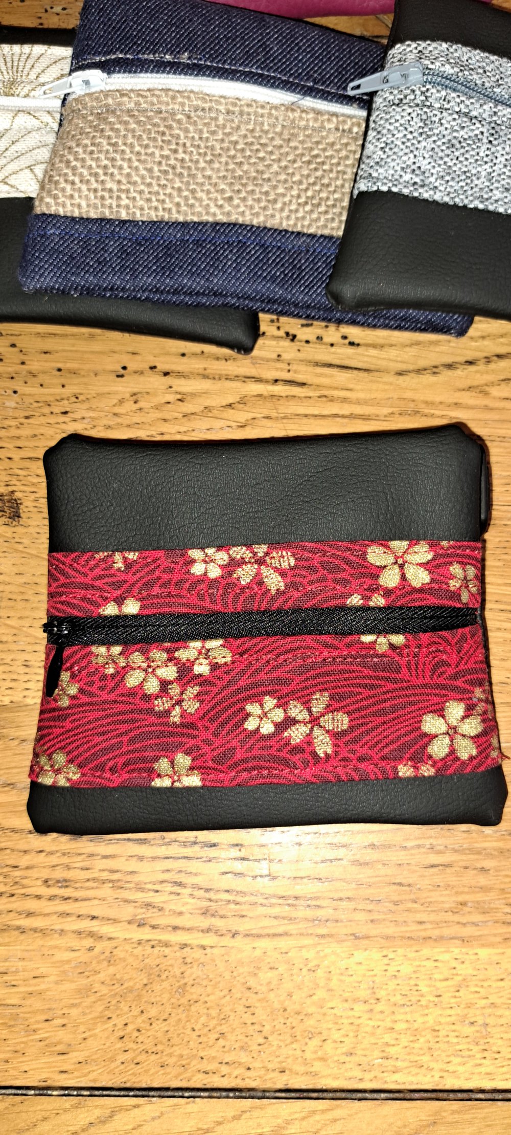 porte monnaie simili cuir et tissu rouge et or japonais avec fermeture