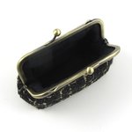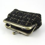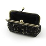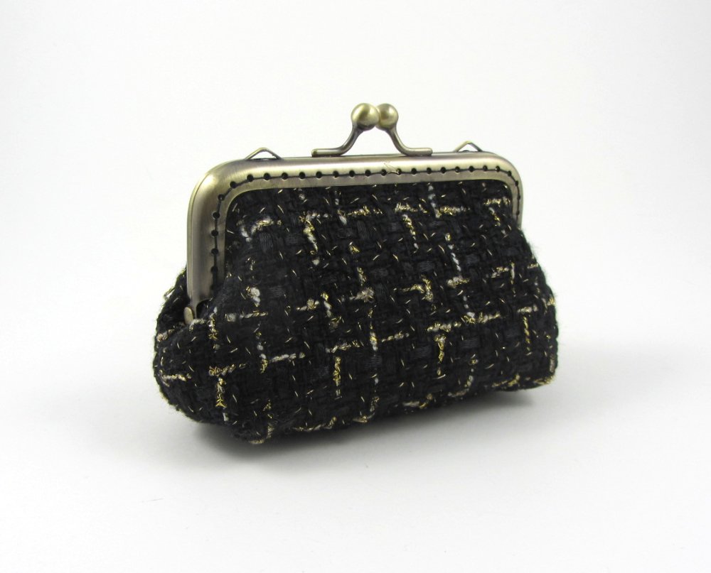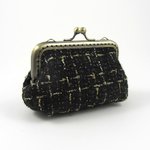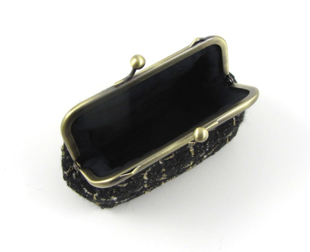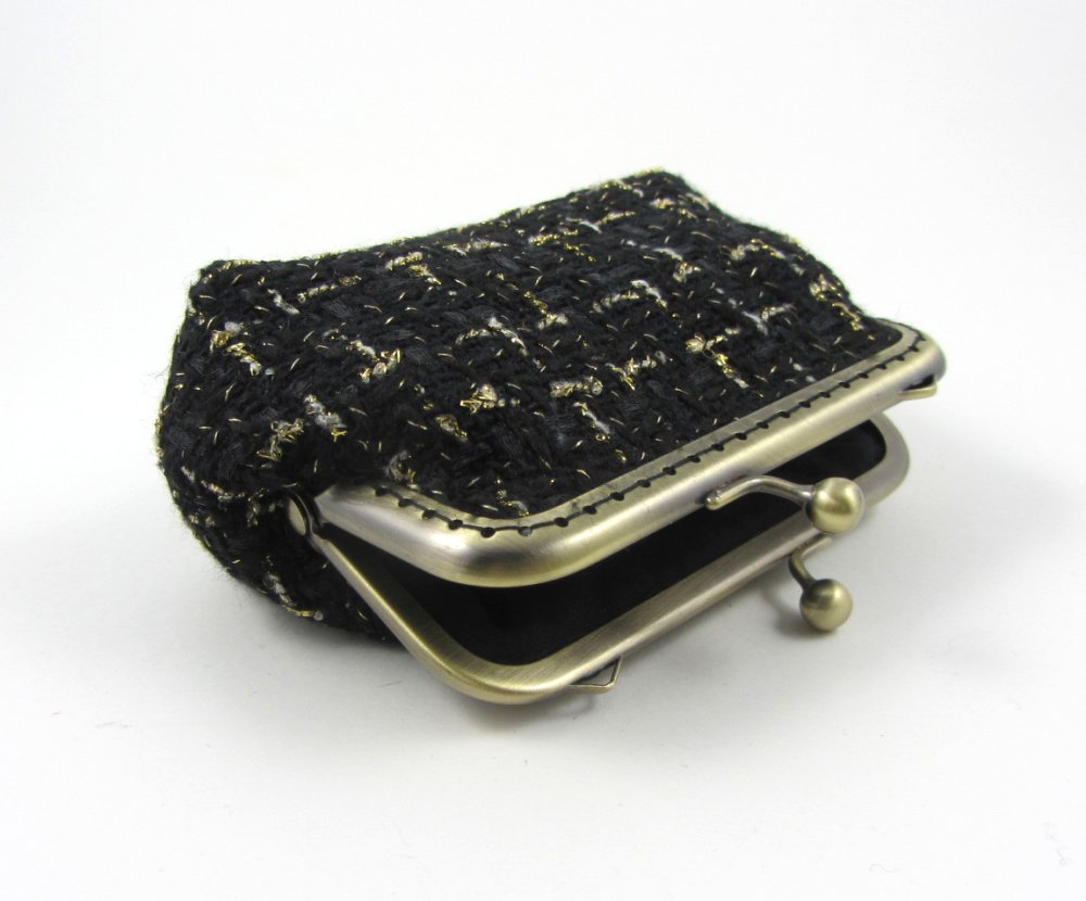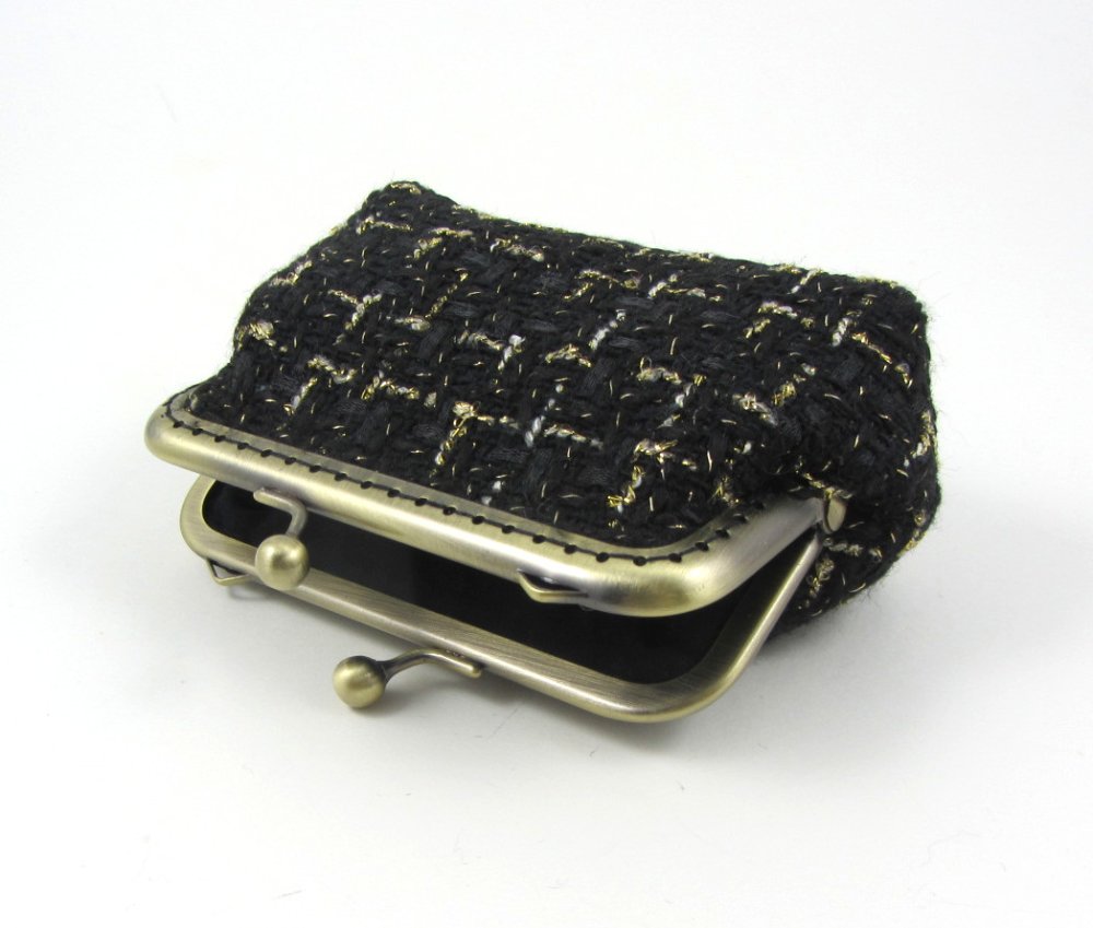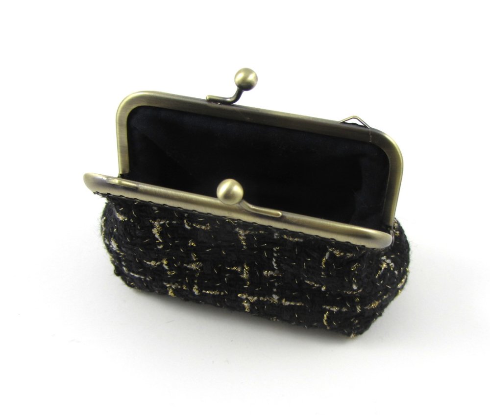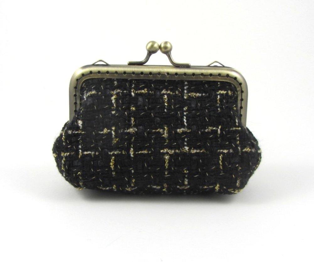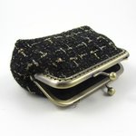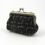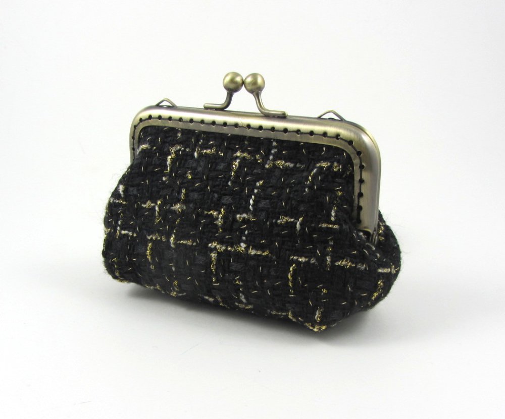 Porte monnaie et porte cartes en tissu de laine cardée noir et or.