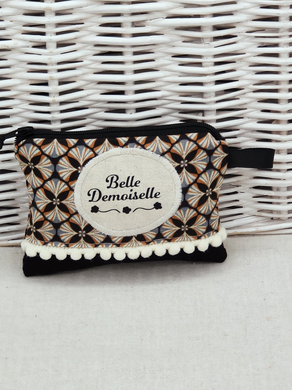 Porte monnaie plat noir et beige