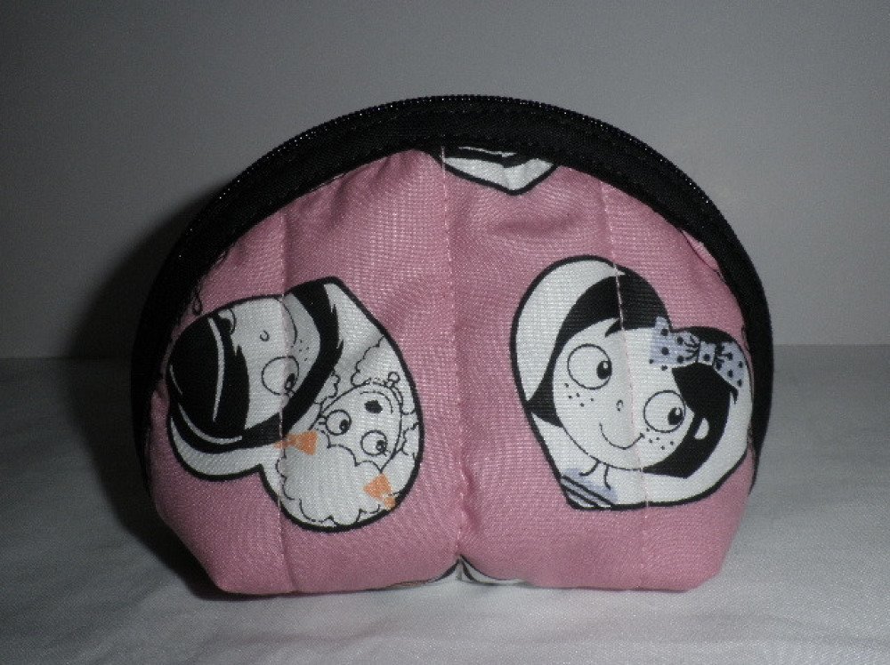 Porte monnaie en tissu coton de couleur rose et noir avec sa fermeture éclair noire
