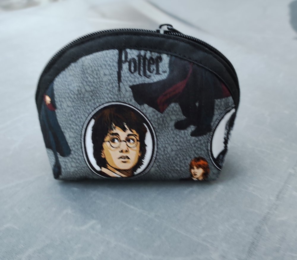 Porte monnaie en tissu coton de couleur blanc et noir avec sa fermeture éclair noire
