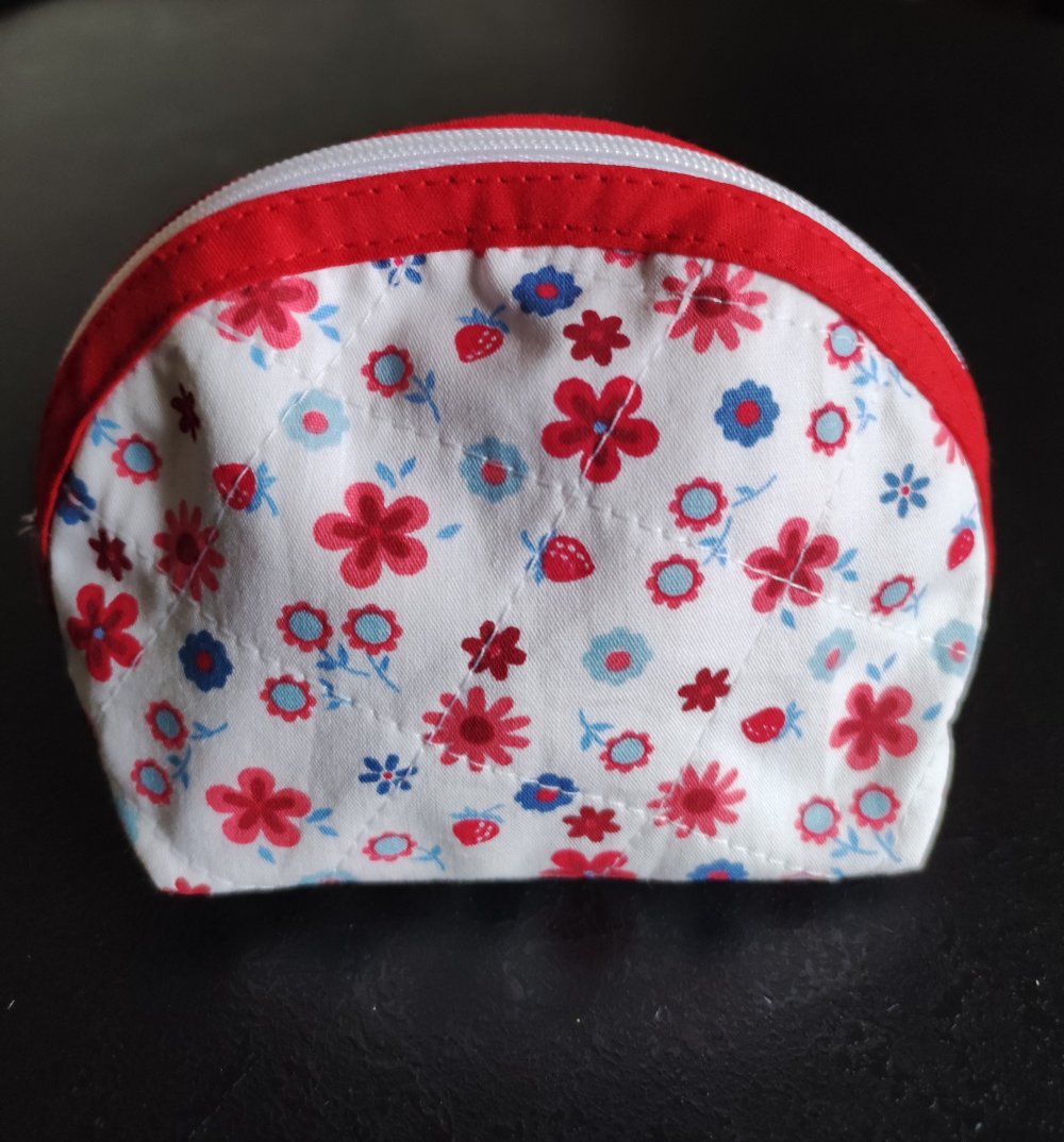 Porte monnaie en tissu coton de couleur blanc avec fleurs avec sa fermeture éclair blanche