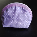 Porte monnaie en tissu coton de couleur mauve à pois blanc avec sa fermeture éclair blanche