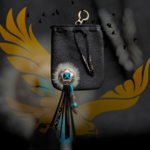 Sacoche en cuir véritable couleur noire, fourrure, daim, perles en corne de buffle, plume metal