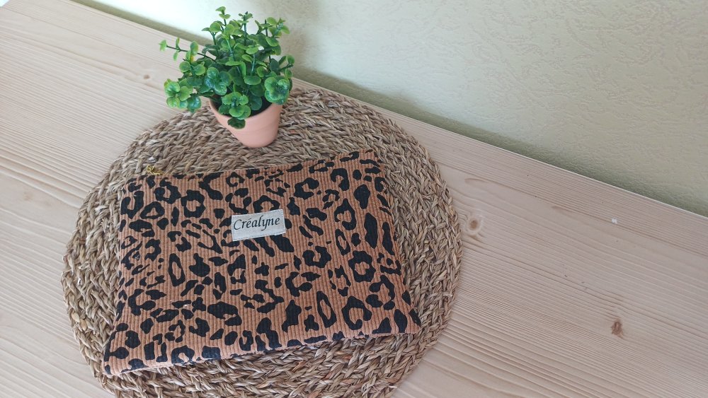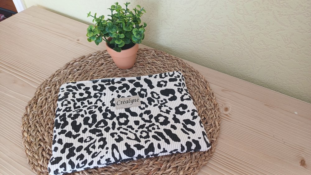 une jolie pochette zippée en velours côtelé léopard ,ultra tendance