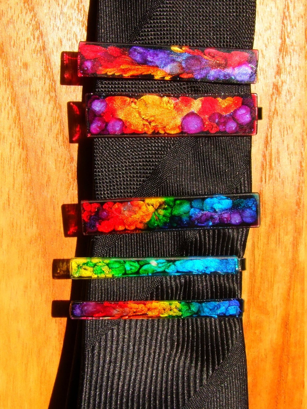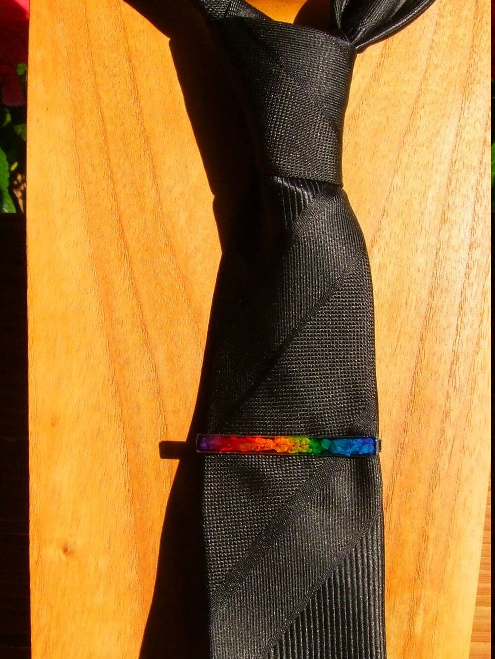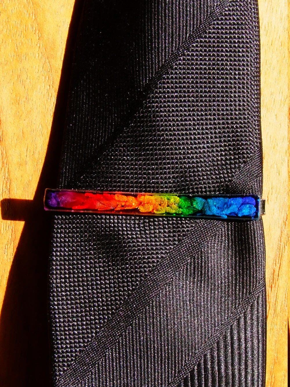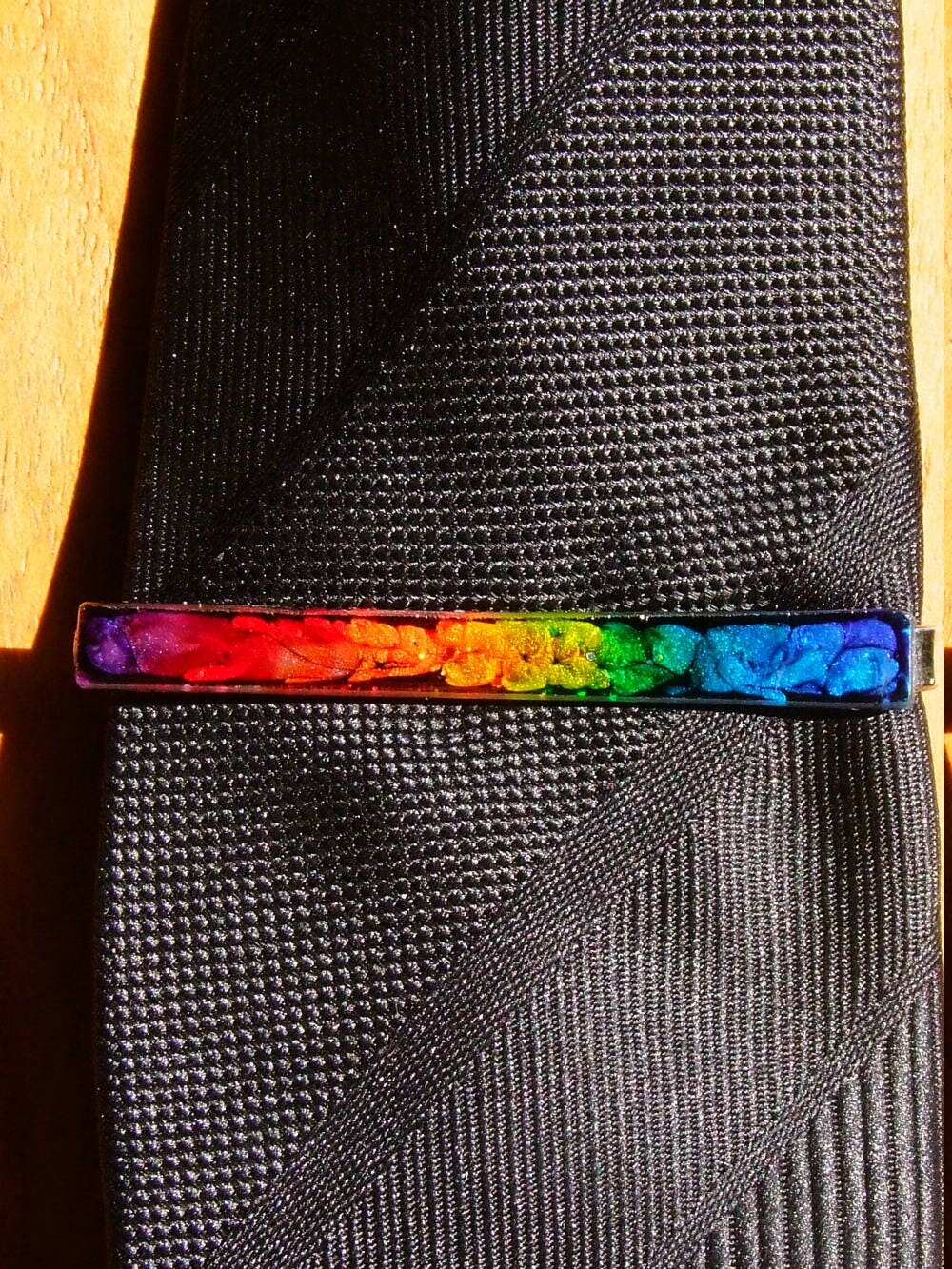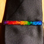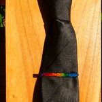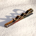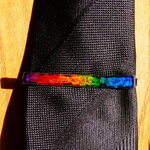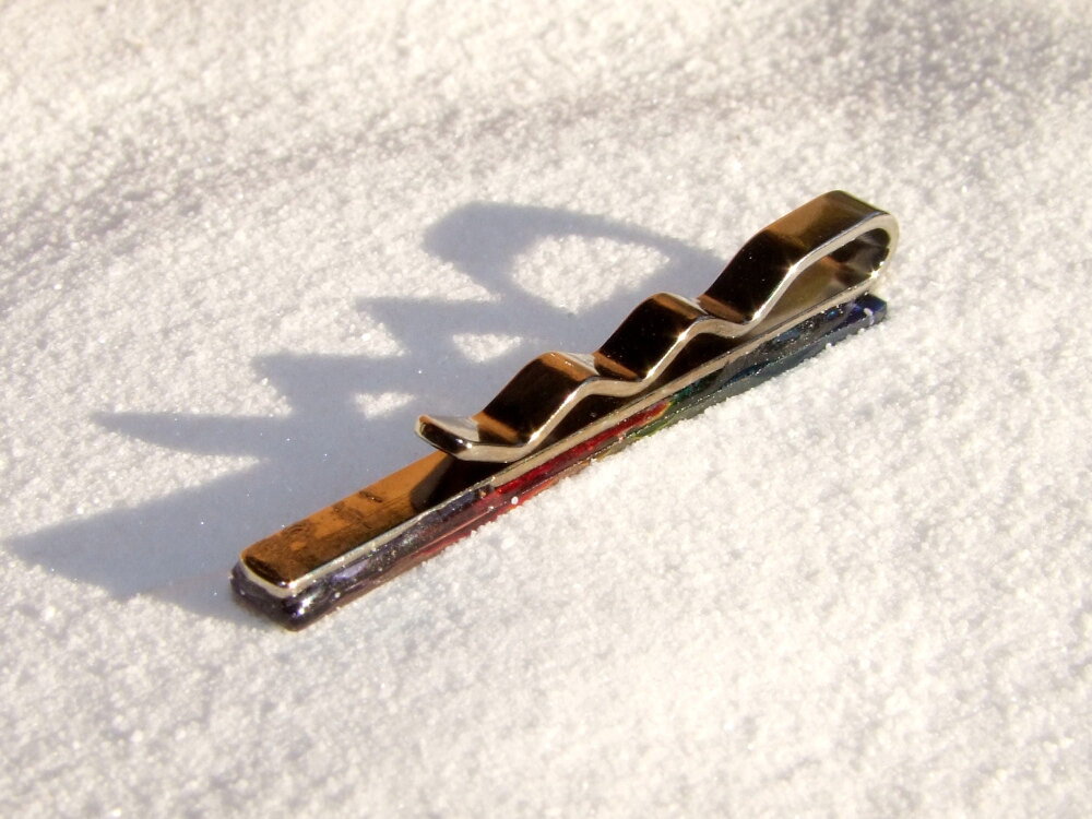 PINCE A CRAVATE EN ACIER INOXYDABLE ARGENT - CABOCHON RECTANGLE MULTICOLORE EN VERRE COUPE ET COLORATION 100% HANDMADE - GAMME UNISEXE