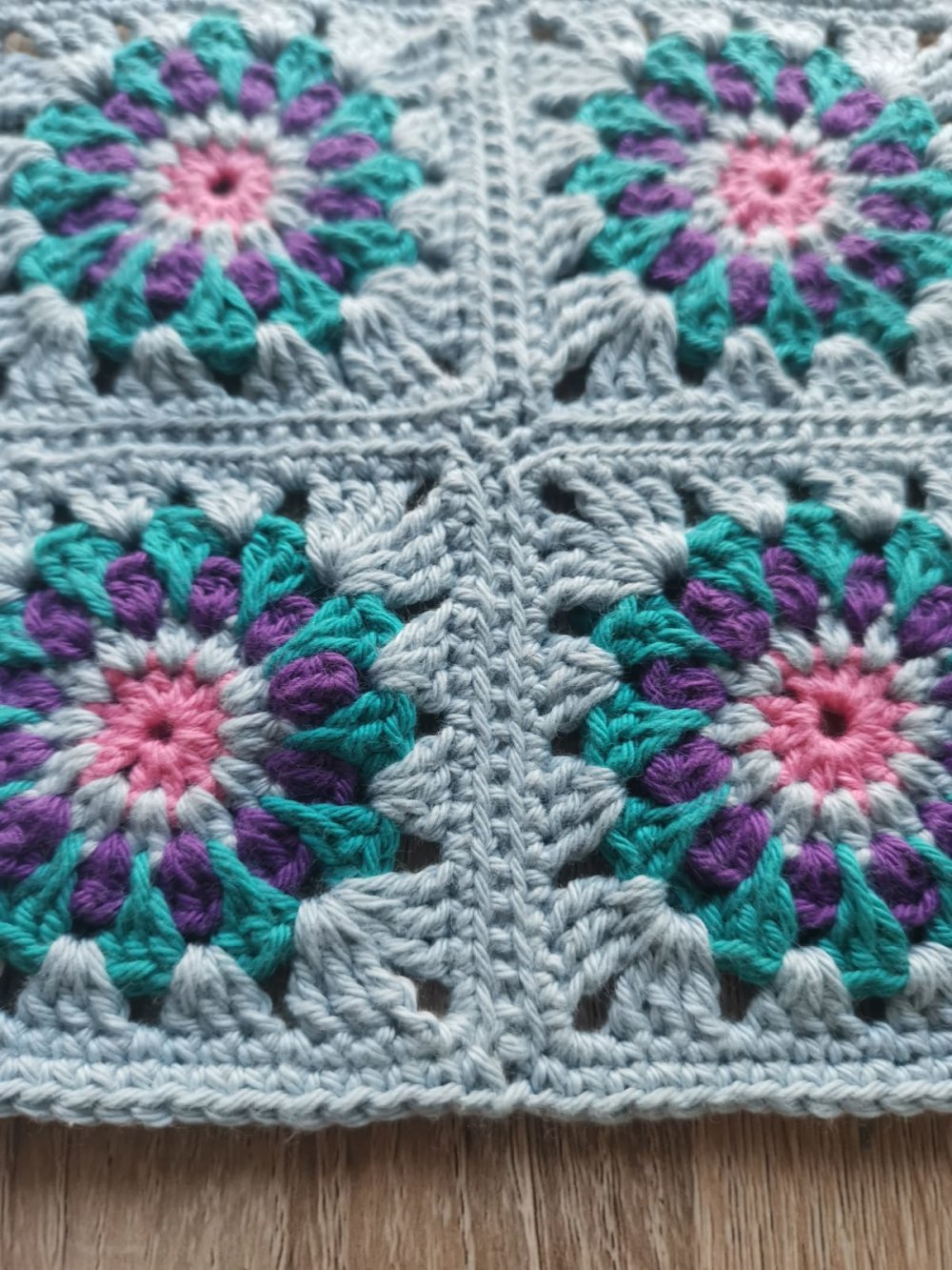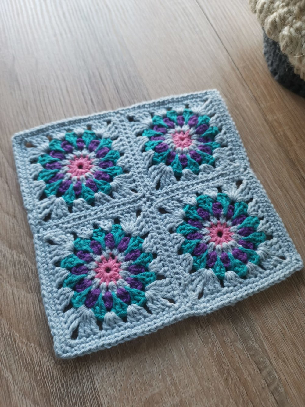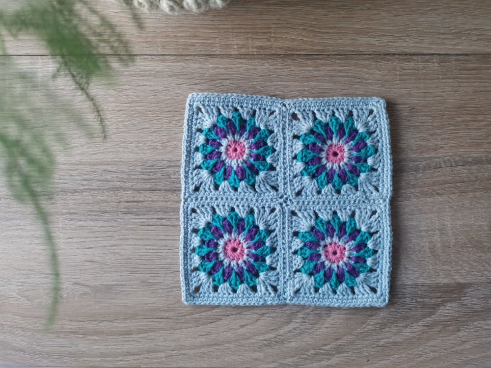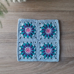L’applique “Raphael” est un carré granny fait main, composé d’un assemblage délicat de 4 petits carrés, pour un rendu texturé et poétique.