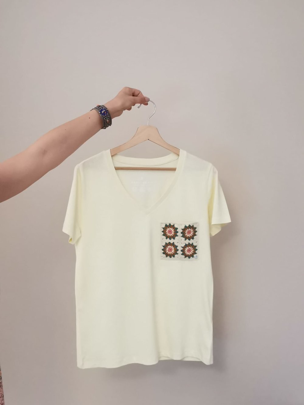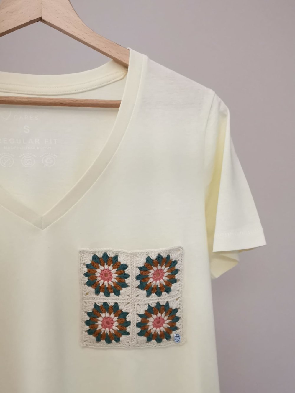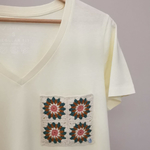 Vous achetez un carré granny à coudre et non le t-shirt avec une poche Les dernières photos permettent seulement de montrer le rendu sur un t-shirt.