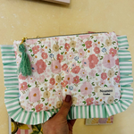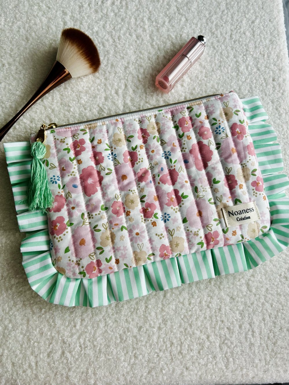 Apportez une touche de douceur et de romantisme à votre quotidien avec cette pochette à volants unique. Entièrement matelassée et ornée d'un ravissant imprimé floral, elle est l'accessoire indispensable pour ranger votre maquillage.