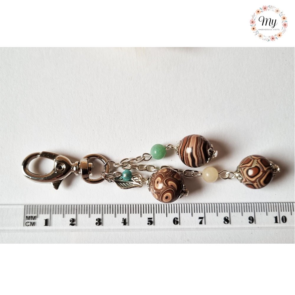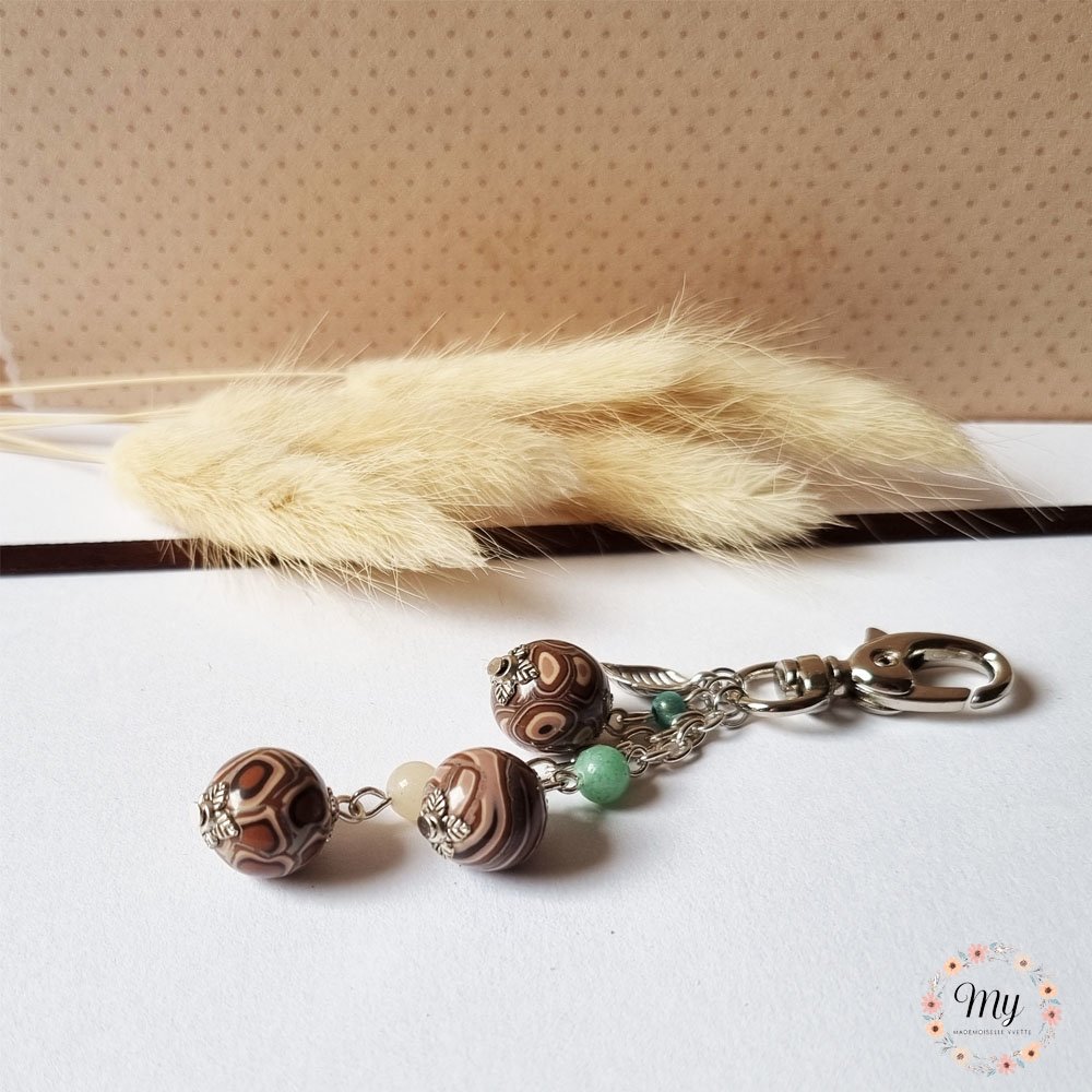 Porte clés ou bijou de sac 3 perles , marron/chocolat,