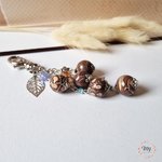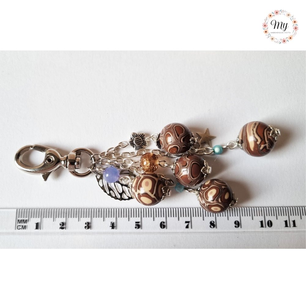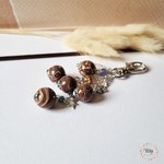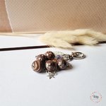 Porte clés ou bijou de sac 5 perles , chocolat / marron,