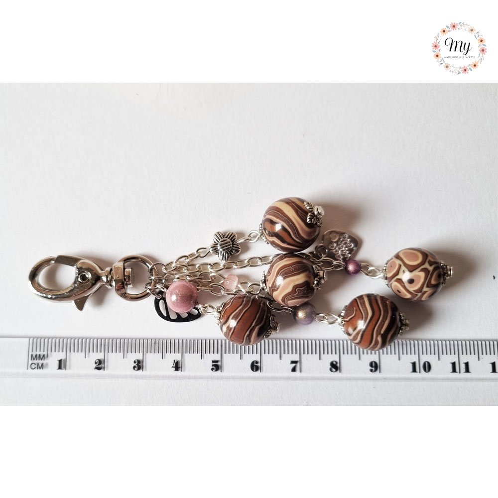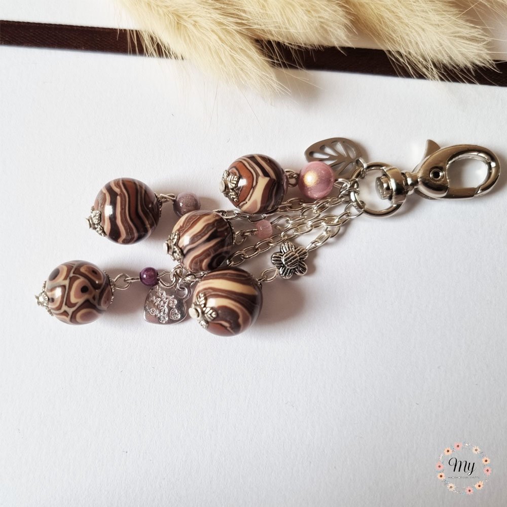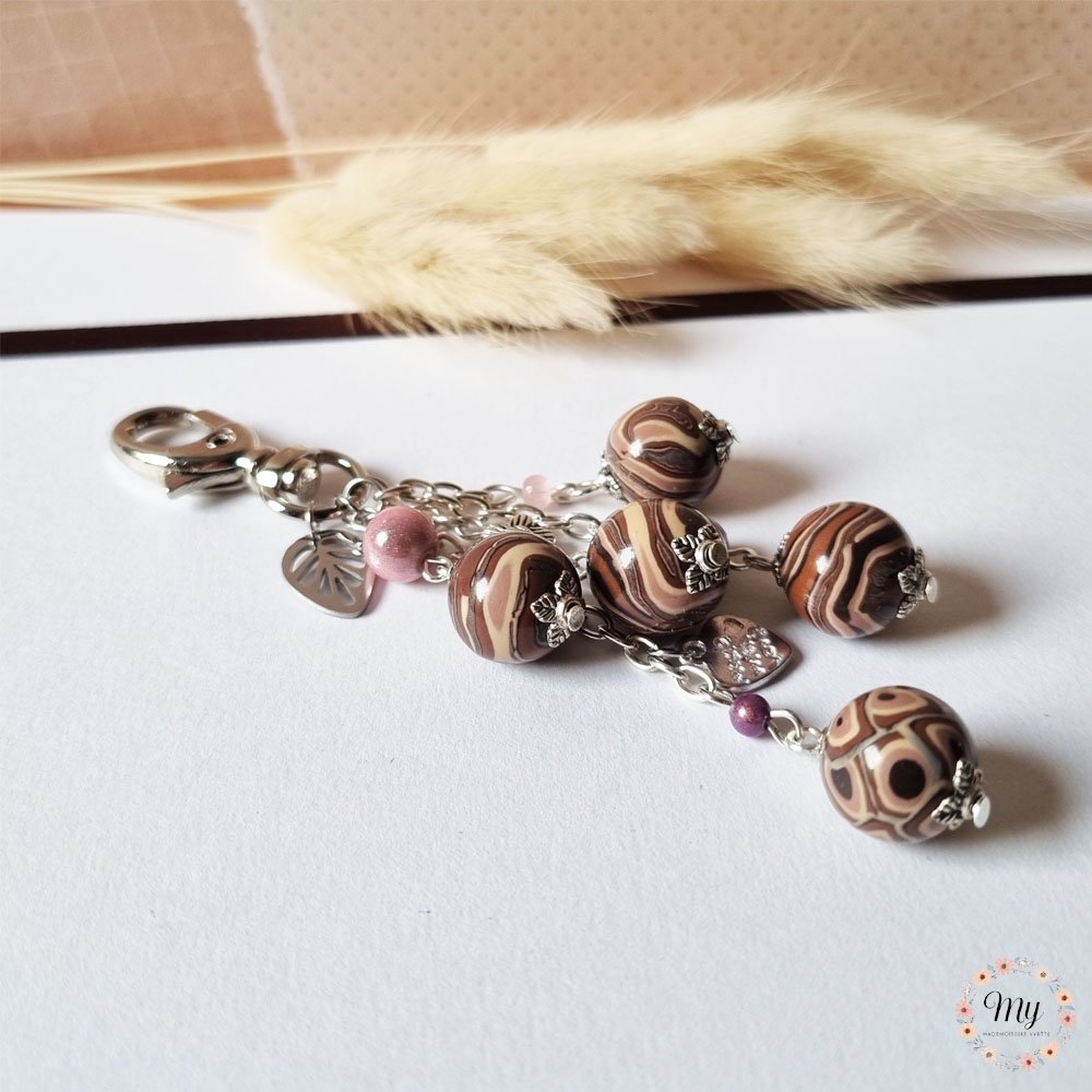 Porte clés ou bijou de sac 5 perles , chocolat / marron,