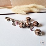 Bijou de sac 5 perles marron, feuille, fleur et cœur, en argile polymère