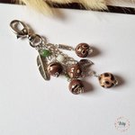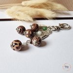 Porte clés ou bijou de sac 5 perles , chocolat / marron,
