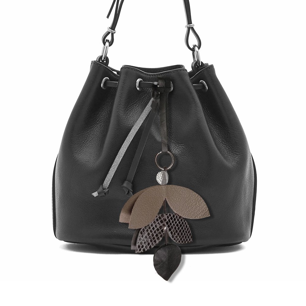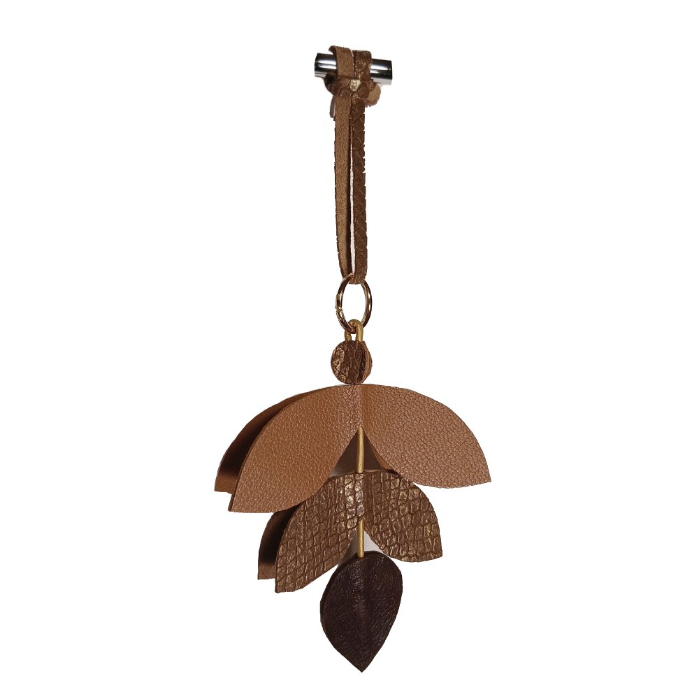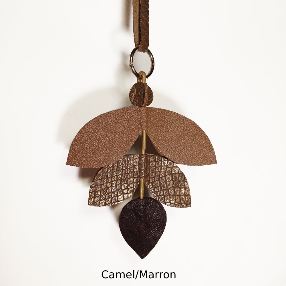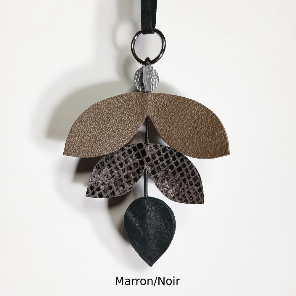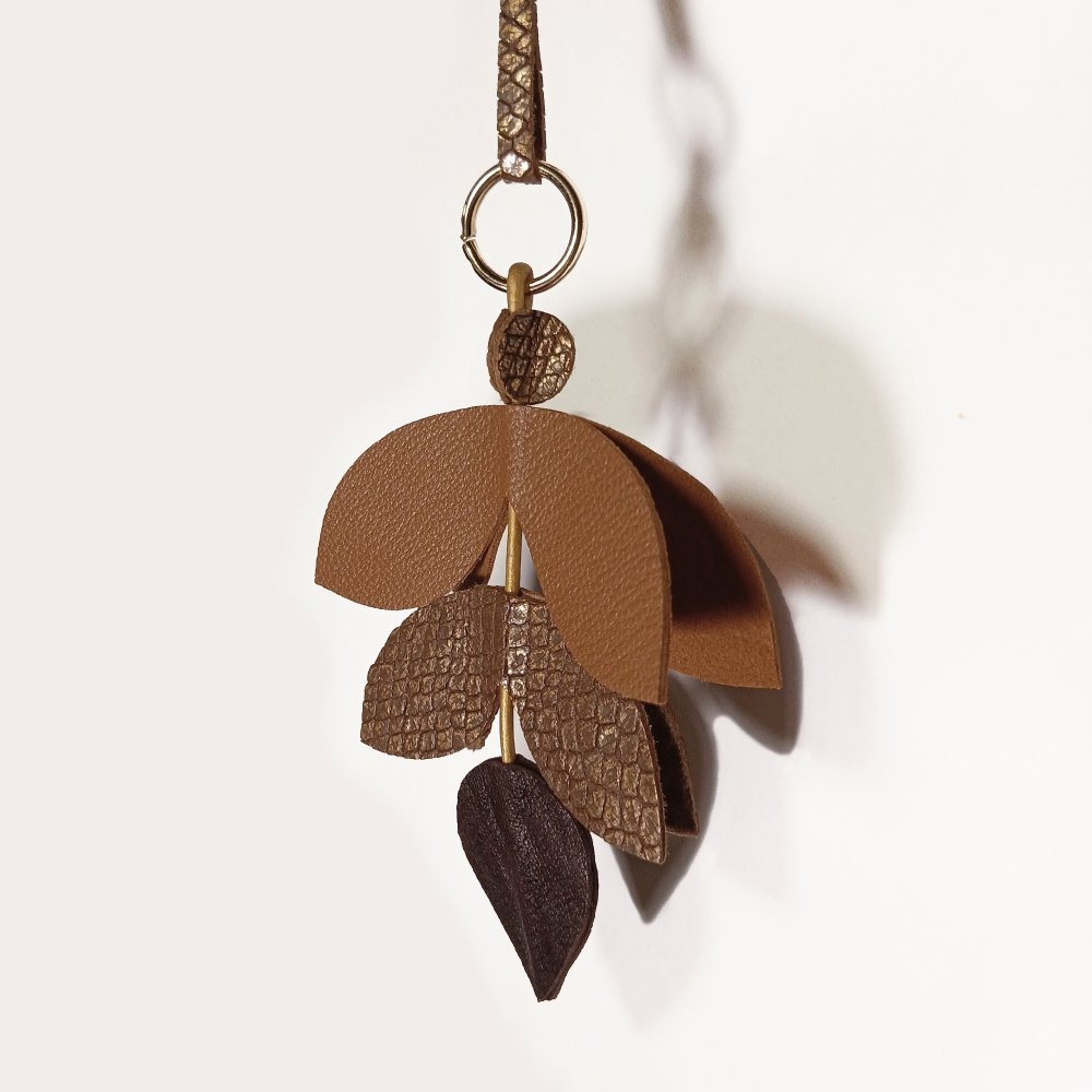 Une jolie forme de feuille stylisée et des déclinaisons de couleurs assorties, font de ce bijou à suspendre un accessoire idéal pour les sacs noirs, marrons foncés, marrons clairs, ou gris. S'accroche avec une lanière de cuir.