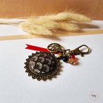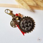 Porte clés , bijou de sac "fleurs d'automne" marron foncé