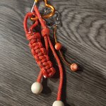 Coeur mousqueton orange agrémenté de cordelette tressée,perles etc..