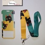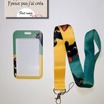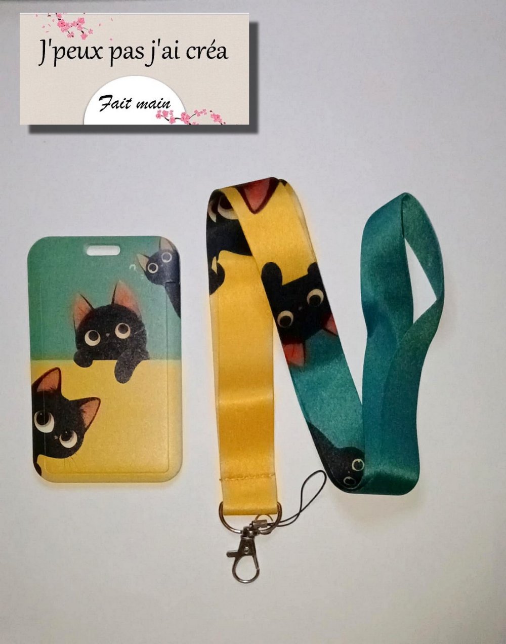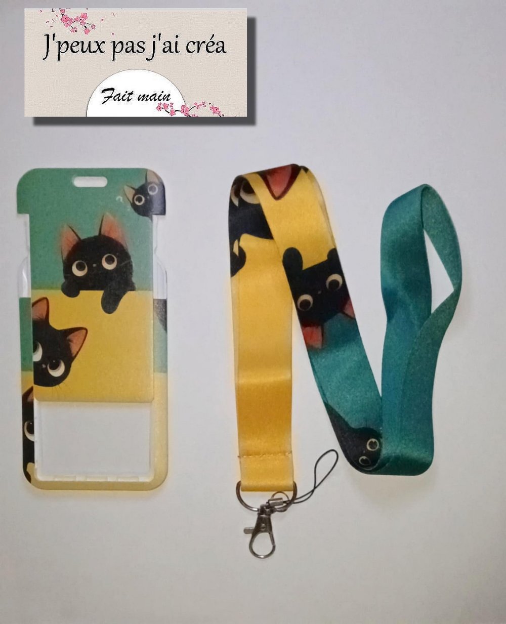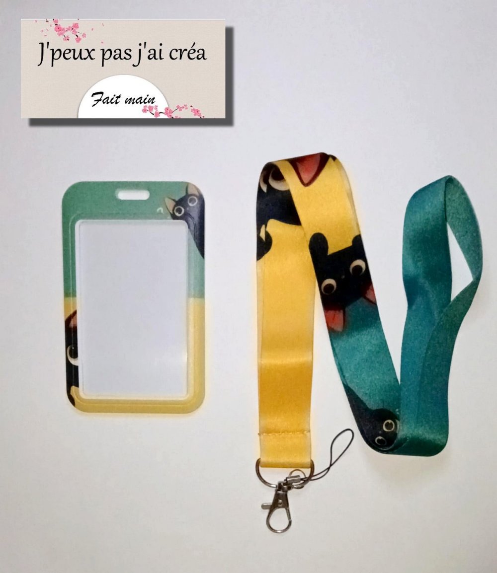 lanière de cou + porte carte chat ,tour de cou, cordon porte clefs, carte de bus, cantine, cmi,permis de conduire