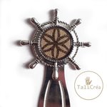 Cabochon avec une fleur de vie en sables naturels marron sur sable jaune .