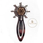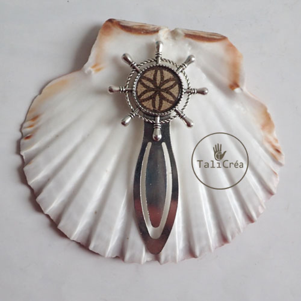 Marque page en forme de barre de navigation en métal couleur argenté.