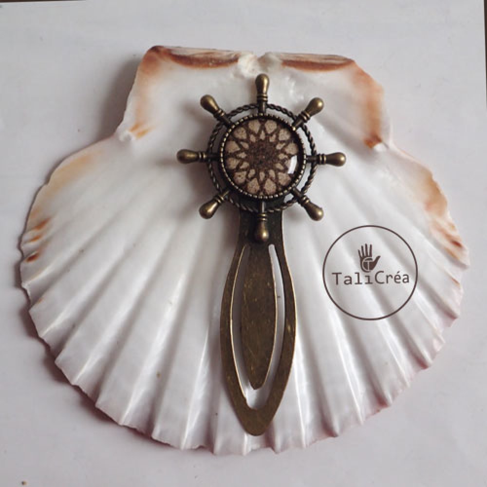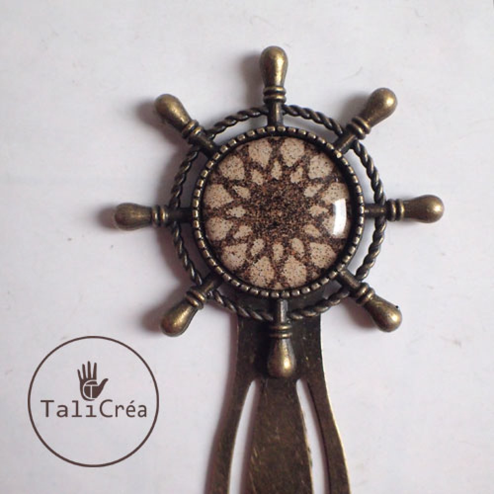 Marque page en forme de barre de navigation en métal couleur bronze.