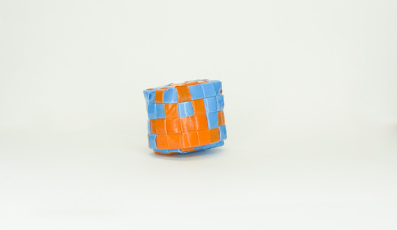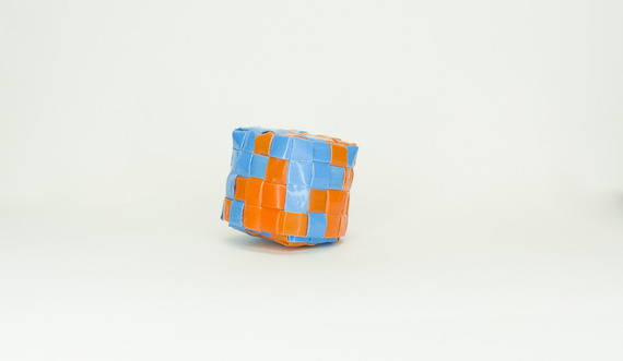 Tissage orange et bleu (en pailles chalumeaux).