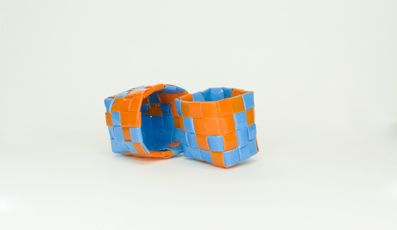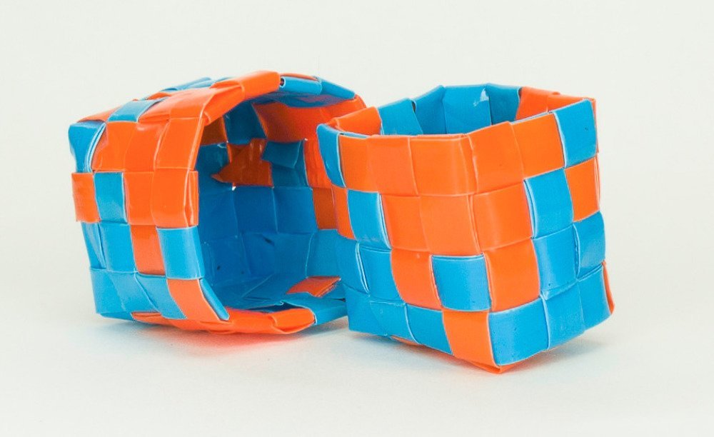 Mini-boîte confectionnée en pailles à boire tissées à la main, sans aucune colle ni agrafe.