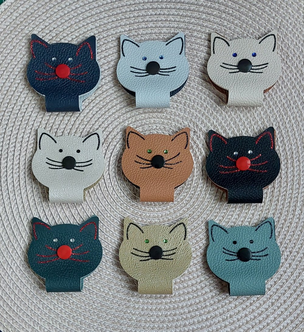 Lot de 9 porte câbles chats, chacun d'une couleur différente, un cadeau original et unique.