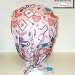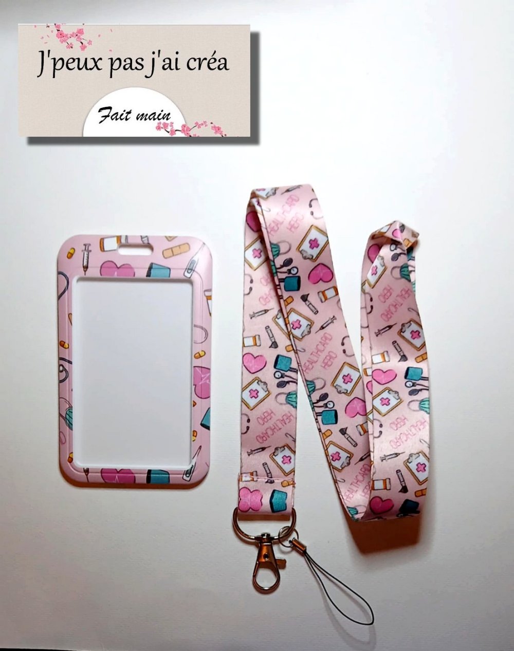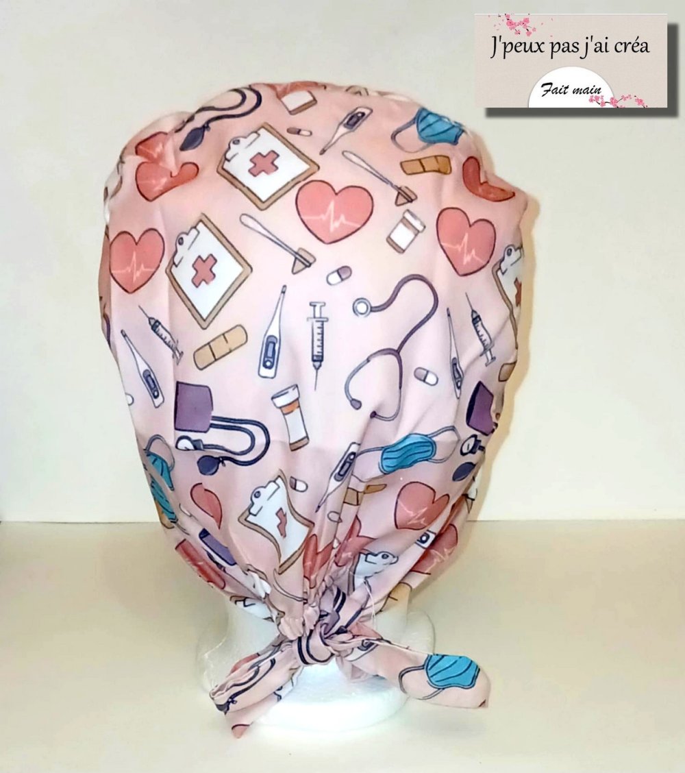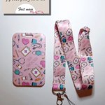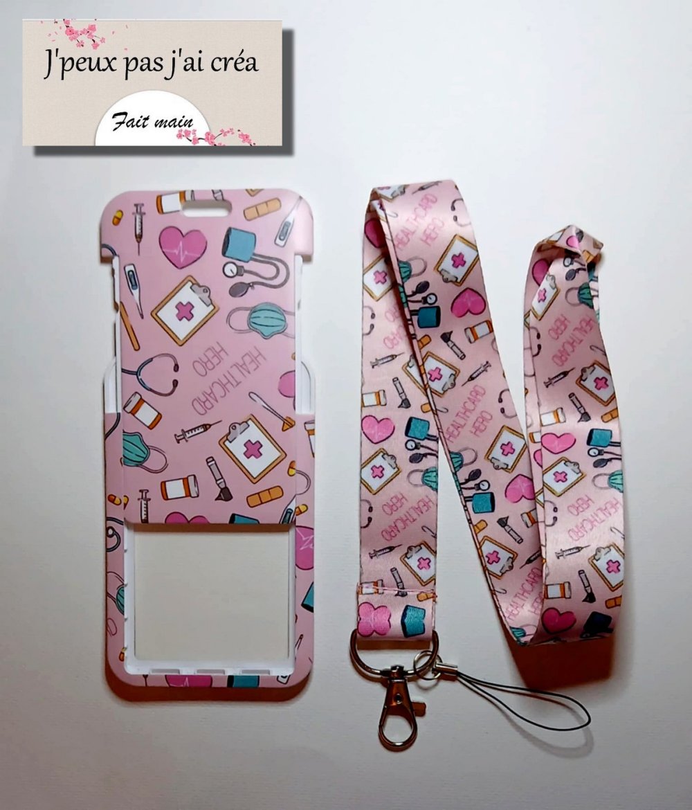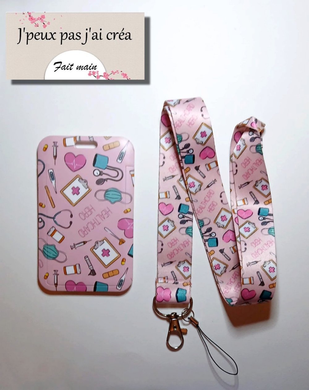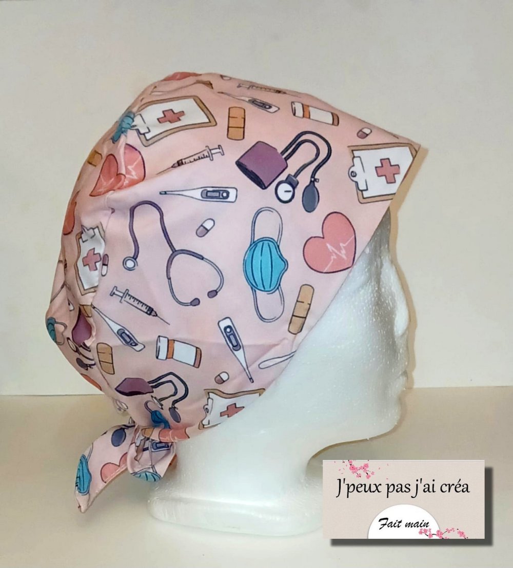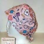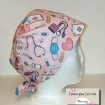 Ensemble lanière porte carte + calot de bloc opératoire motif accessoire médical, soignant, chirurgien Anesthésiste