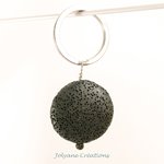Perle palet de 30 mm en pierre de lave accrochée à un anneau de porte-clé de 30 mm par une tige enroulée en spirale pour la solidité et ornée d'une petite perle, le tout en acier inox.