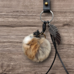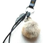 d'un pompon en fourrure de lapin et cuir véritable noir .
